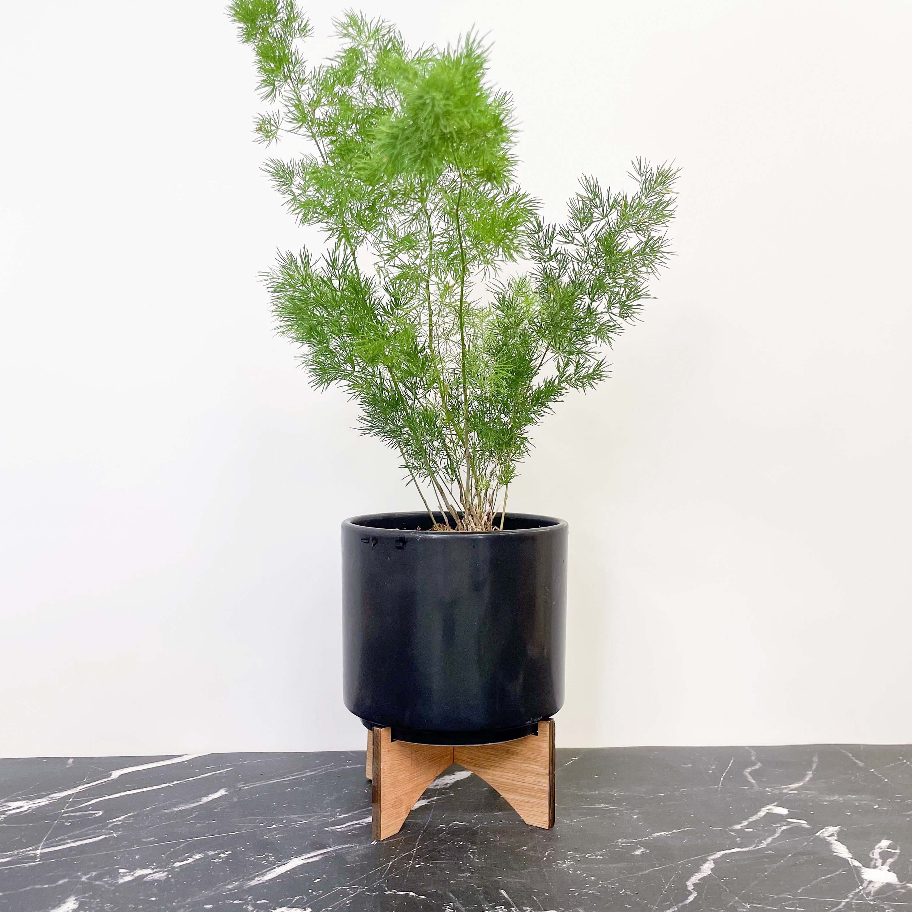 The Chinese Ming Fern features soft, needlelike leaves. It produces white flowers in the spring to early summer.