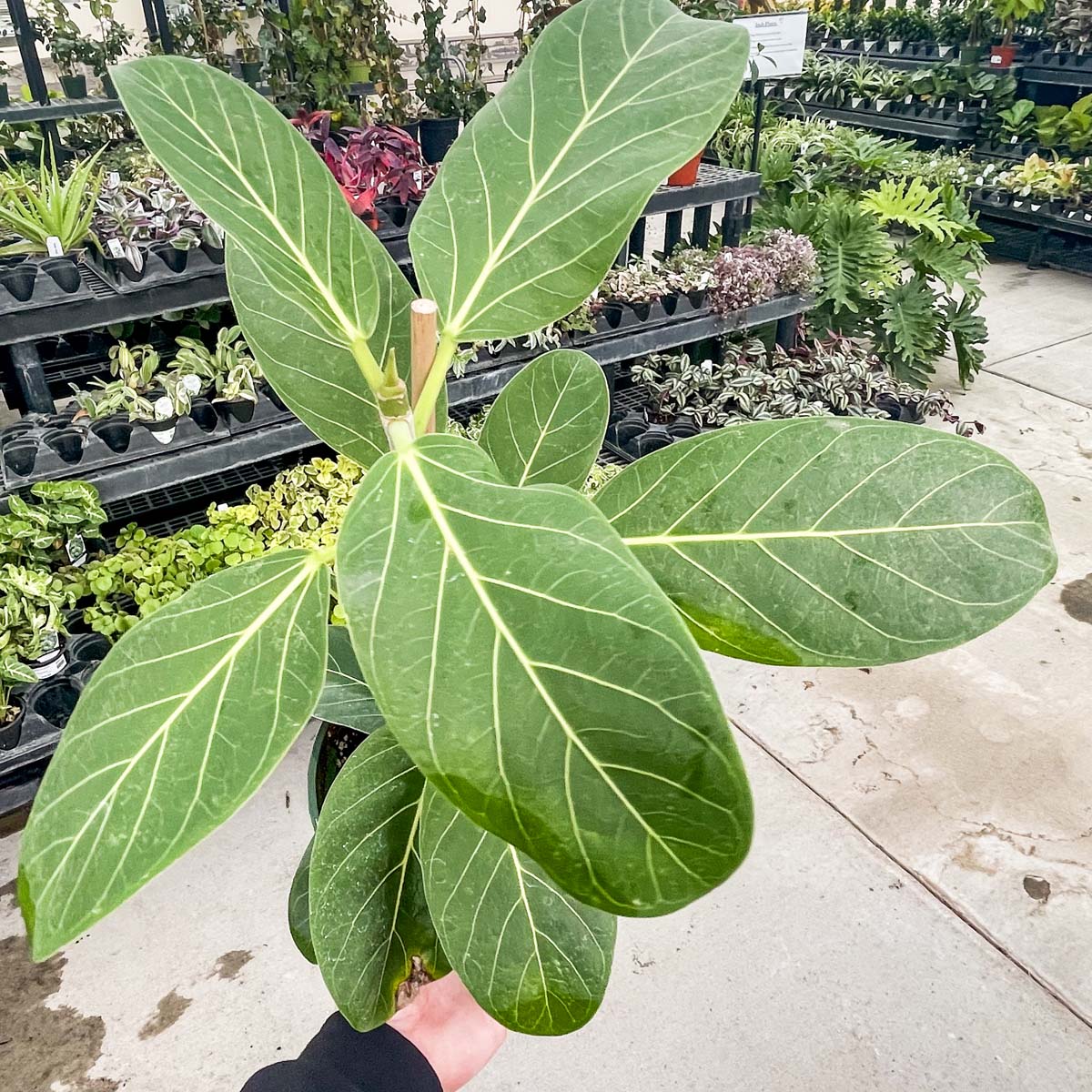 Audrey Ficus stands out with its light-colored trunk, velvety green leaves, and pale veins. Revered in India as the tree under which Buddha attained enlightenment, it’s also called Bengal Fig, Strangler Fig, and Banyan Tree. A stunning, meaningful addition to your plant collection.