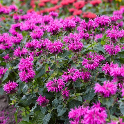Deep maroon buds that cover the lush, minty-basil-scented, dark green foliage open to show-stopping, electric violet-purple blooms. This carefree, naturally rounded plant with a uniform habit is truly mildew free. Plant en masse for an inviting display of color in sunny borders and containers.