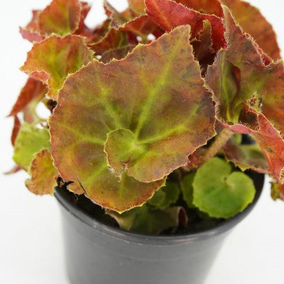 Begonia ‘Martha Stewart’ is a rhizomatous hybrid that was selected and named by Martha Stewart herself. The leaves are spiral shaped which beautiful bright veining. It has a variation in leaf color going from light green to orange. It can change colors with the seasons allowing older leaves to turn a darker orange. each leaf has beautiful chocolate markings around the edges. The pink flowers appear above the foliage in late winter and early spring.