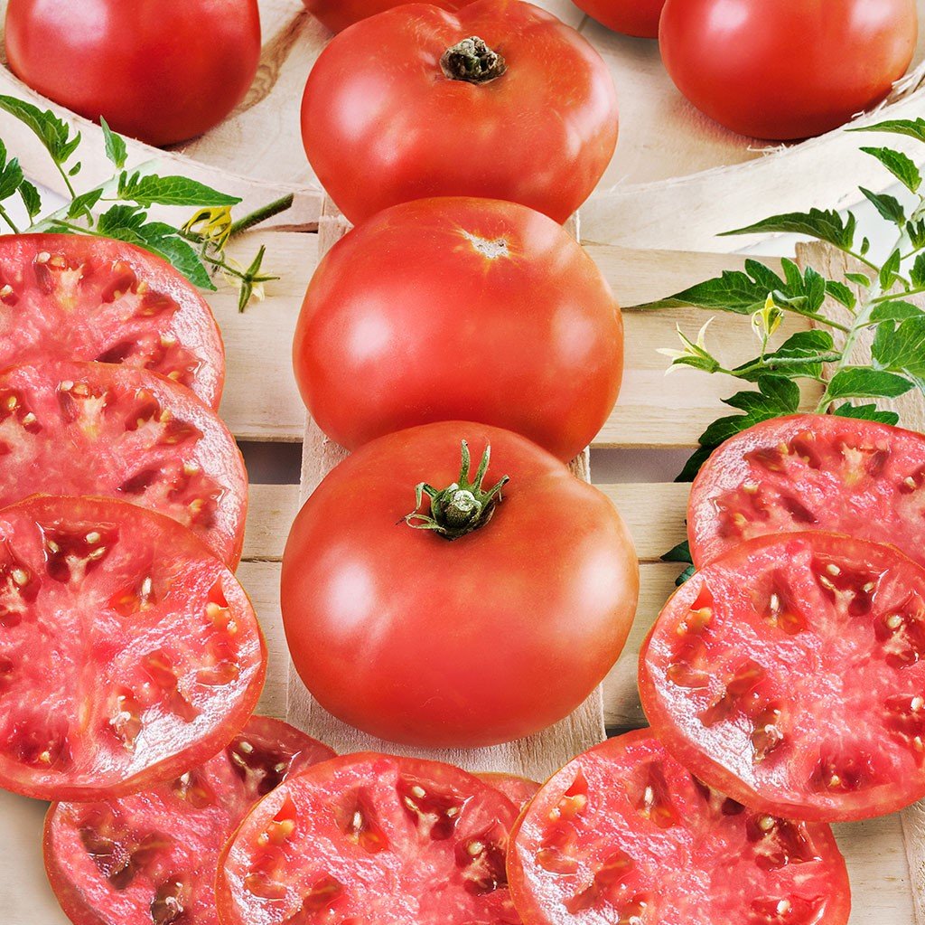 The name, Big Boy, is easy to remember and so is the flavor. This is a big, sandwich-type slicer with smooth, bright red fruit and a flavor that everybody likes. It bears heavily in mid-season, yet the indeterminate vines continue fruiting (though not as heavily) until frost. Plants in our Alabama test garden, where conditions are excellent, have yielded 100 tomatoes each through a 10-week harvest season. Long vines need staking, or grow the plant in a tall cage. Resistant to cracking.