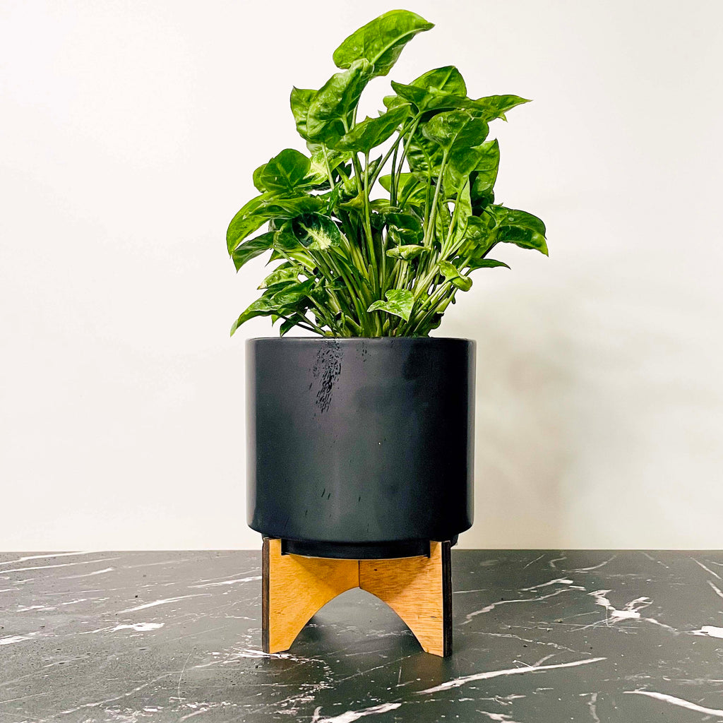 This plant is wonderfully easy to grow and requires minimal care. It thrives in moderate to bright, indirect light and prefers a regular watering schedule, allowing the soil to dry slightly between watering. Syngonium ' Black Panther ' combines visual appeal with straightforward maintenance, which is perfect for those new to houseplants or looking to add a dramatic flair to their space.