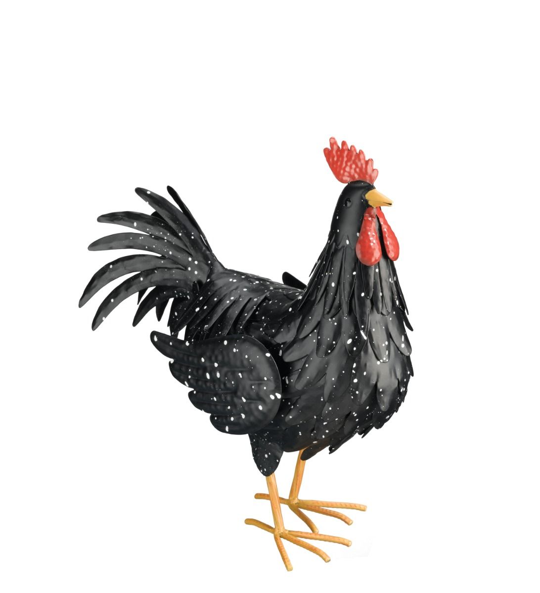 The Black Rooster Décor is enhanced by the all pure black body that is speckled with white, and accented by the striking red wattle and comb.