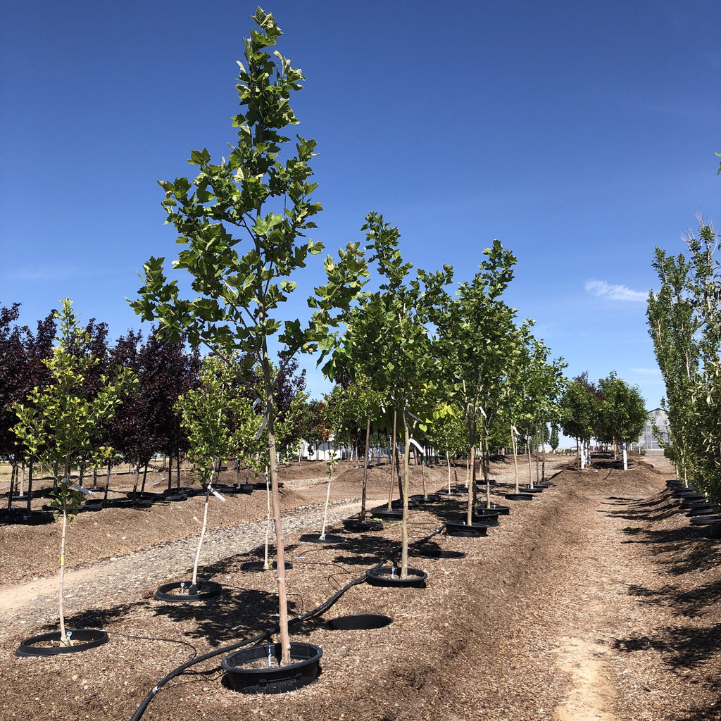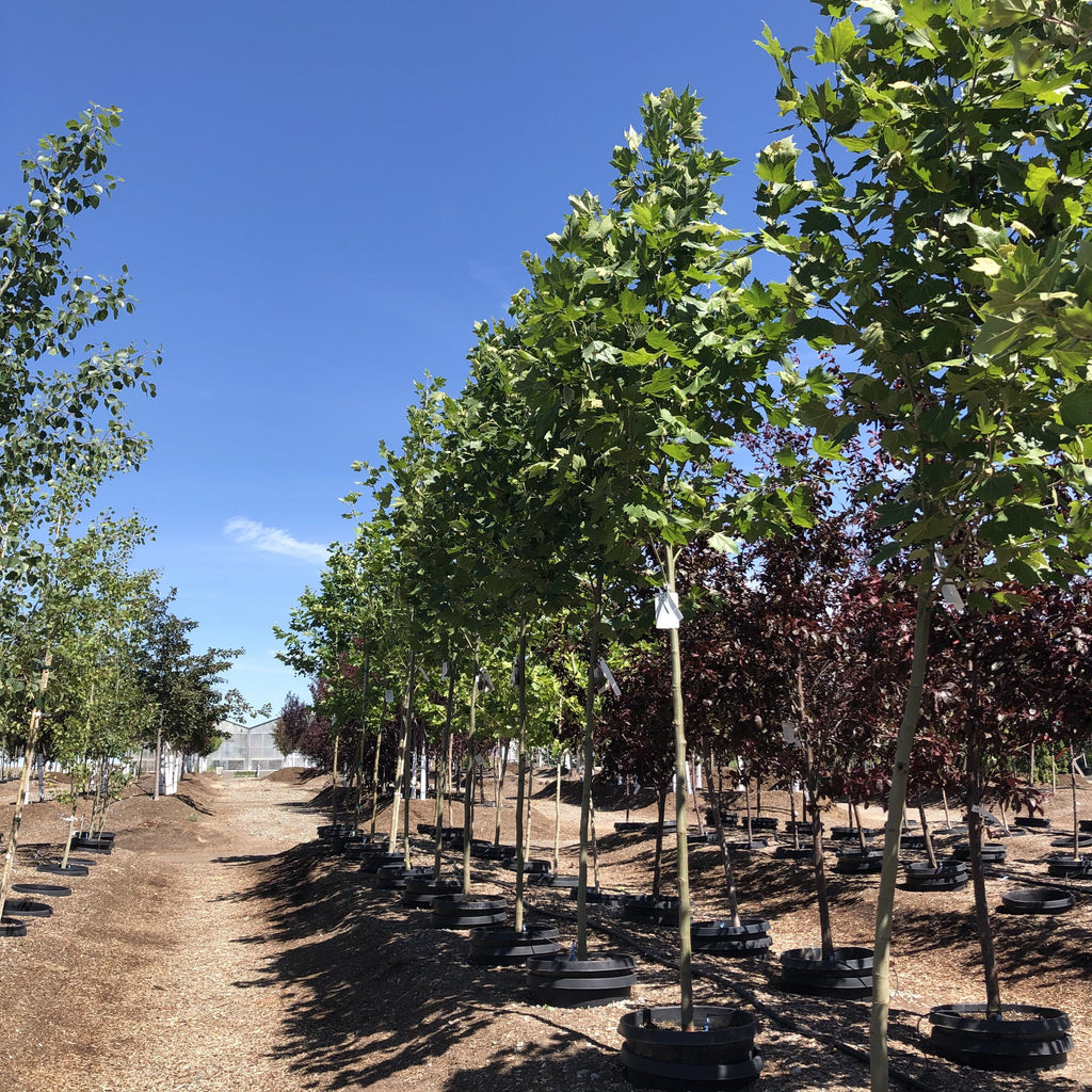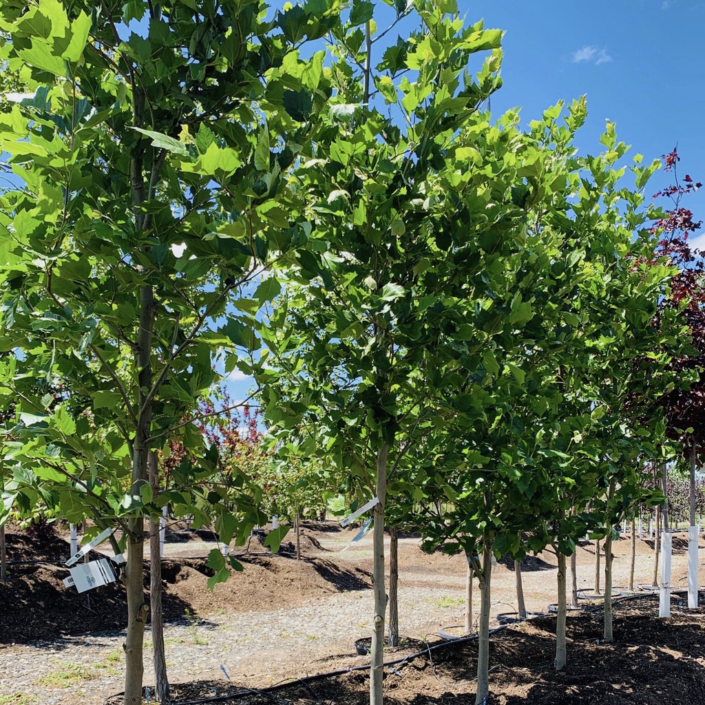 An excellent choice for urban situations, this tree tolerates adverse soils, air pollution, heat, and drought, and shows greater resistance to anthracnose. A rapid growing tree for parks, golf courses and campuses, it has beautiful cream, olive, and brown exfoliating bark.