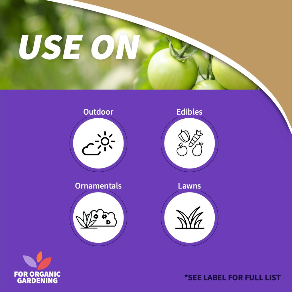 BONIDE Captain Jack's Deadbug Brew® is approved for organic gardening to control a wide range of listed insect pests. Use on listed vegetables, citrus, fruits flowers, and ornamentals. Contains Spinosad®.