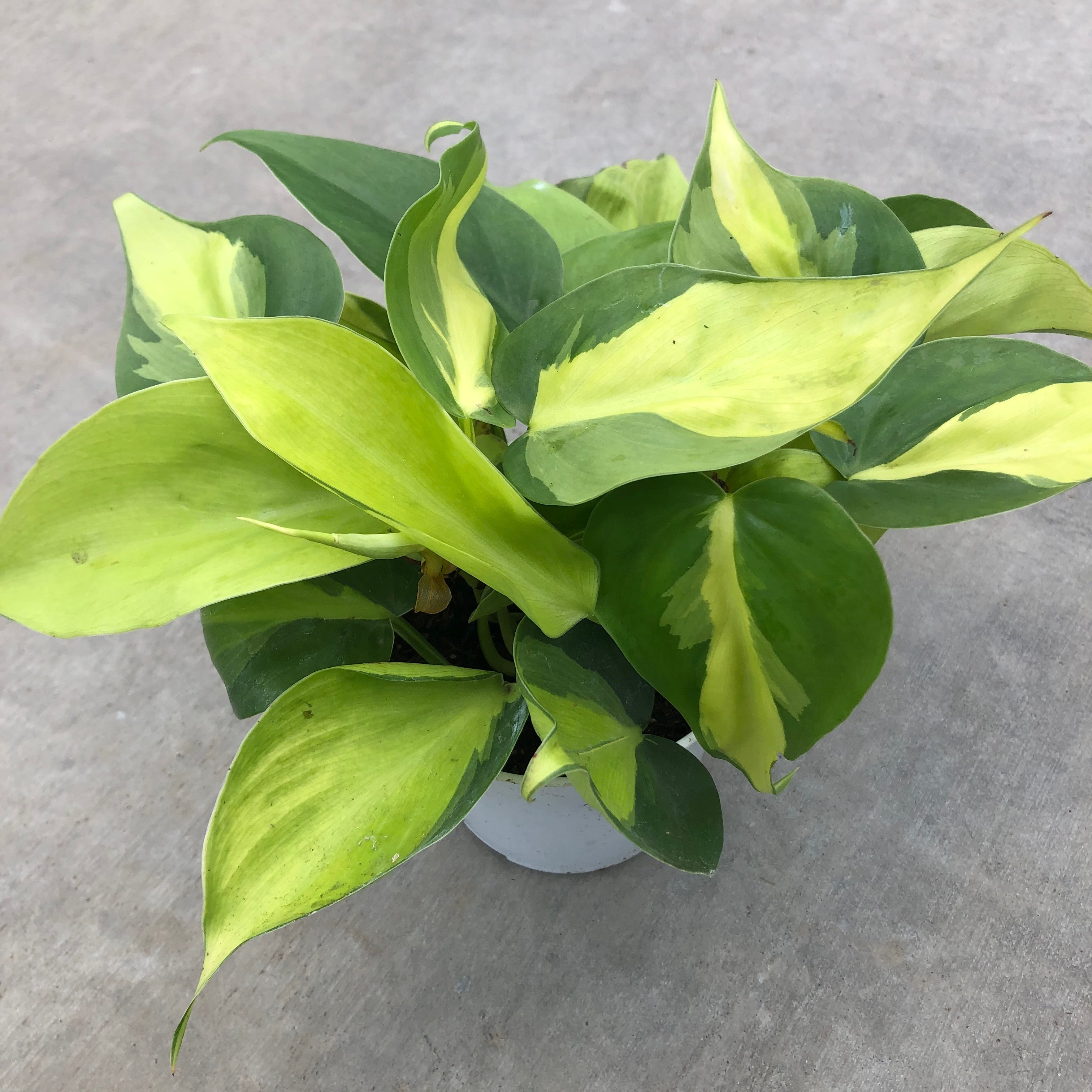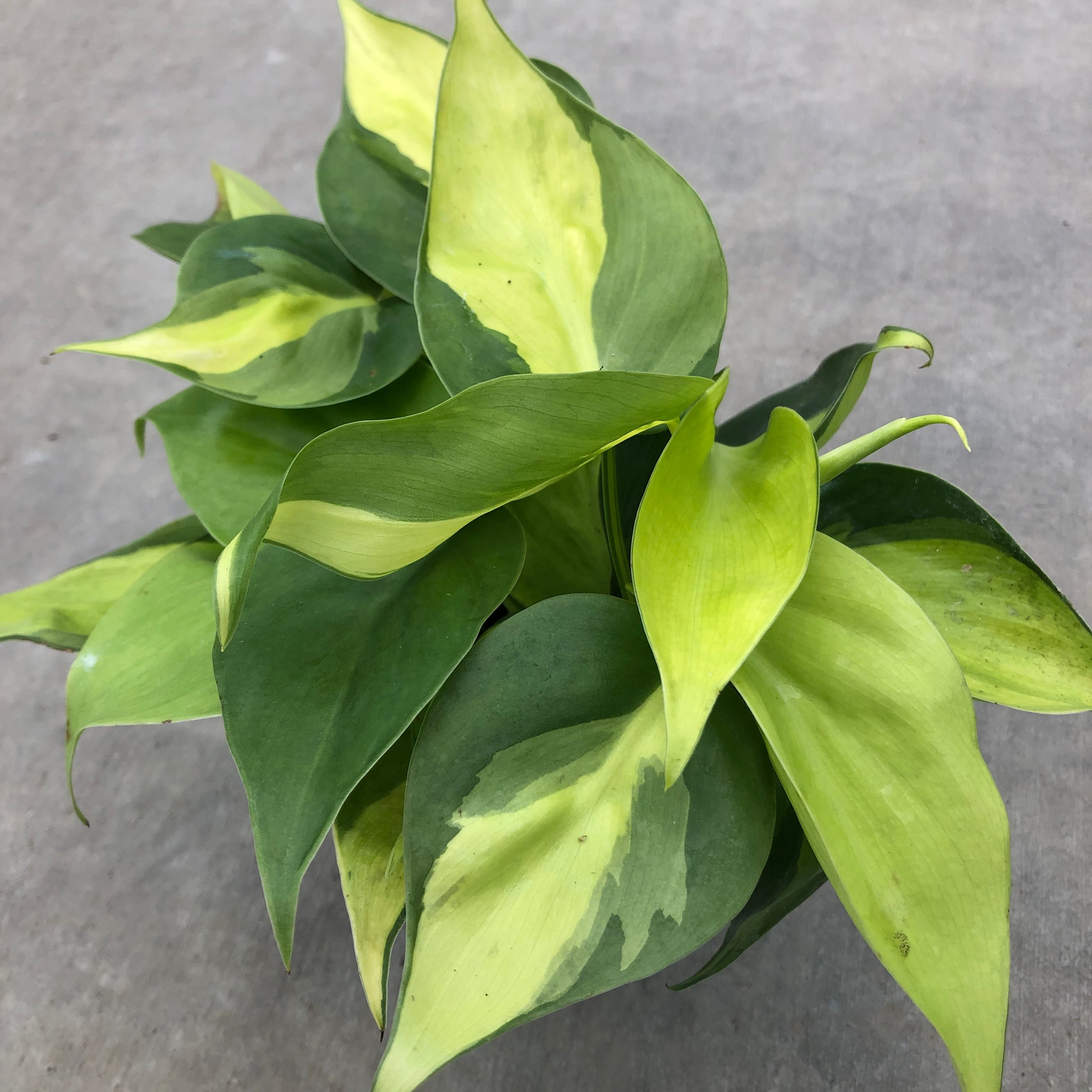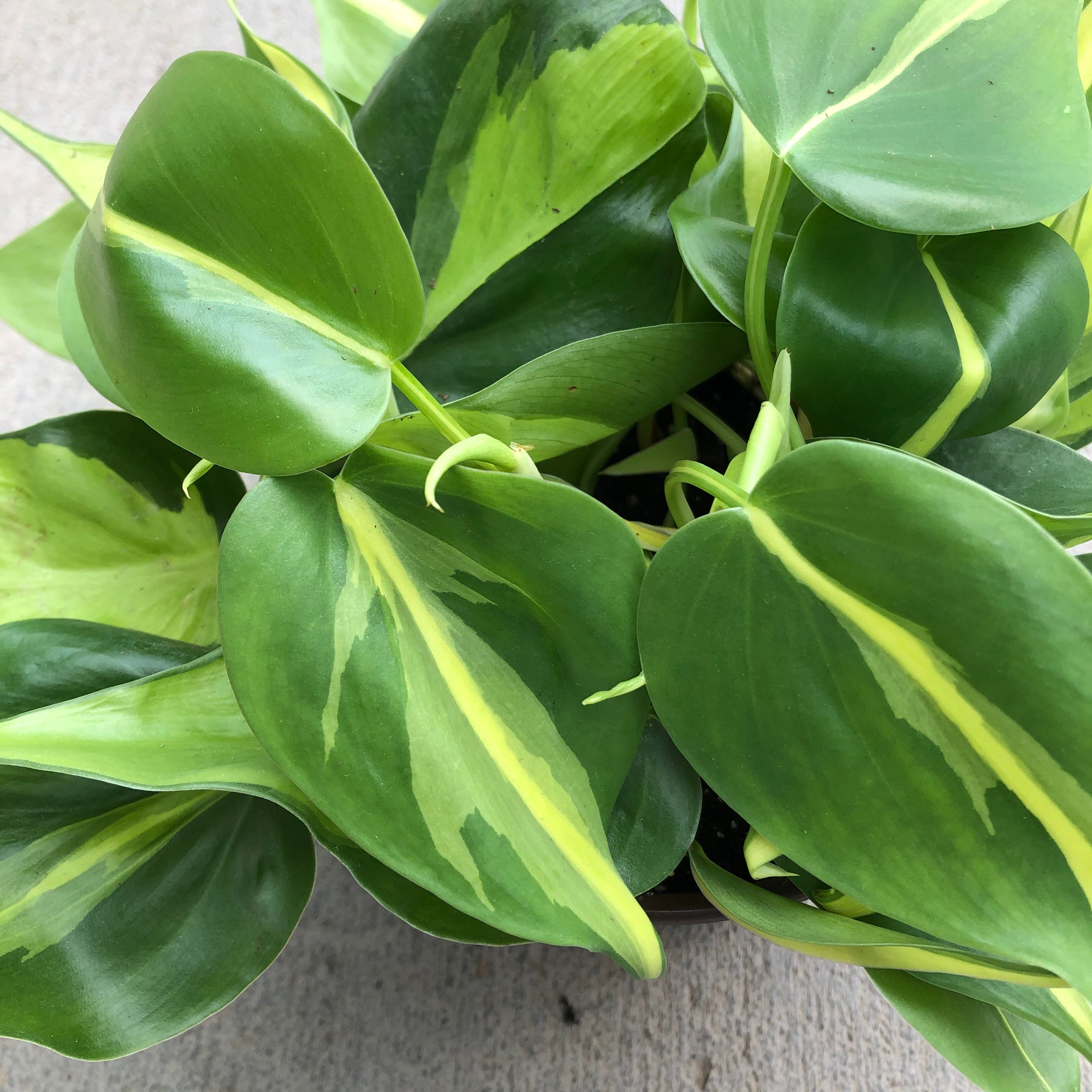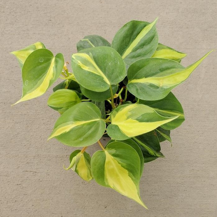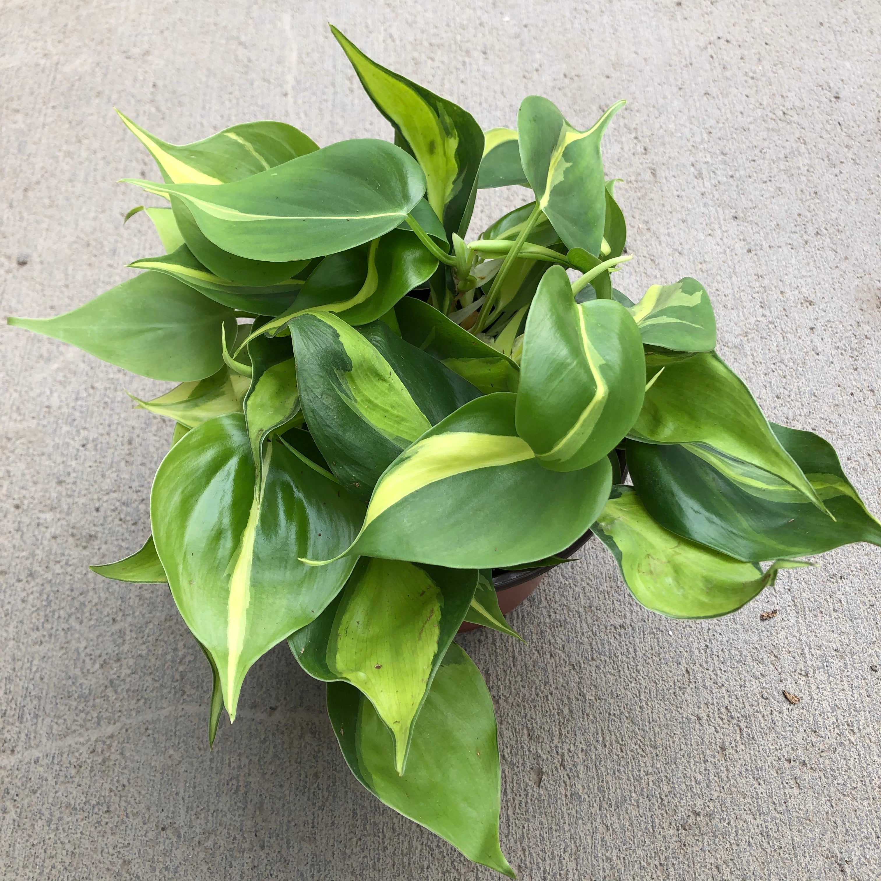 Brasil Philodendron has green leaves variegated with golden-yellow. Grow this unique vine in brighter light to maintain the intense variegation.