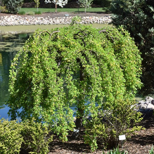 Pea-like yellow flowers bloom singly or in clusters in May on the prior year’s wood. Flowers give way to yellowish-green pods (to 3” long) that mature to brown in summer.