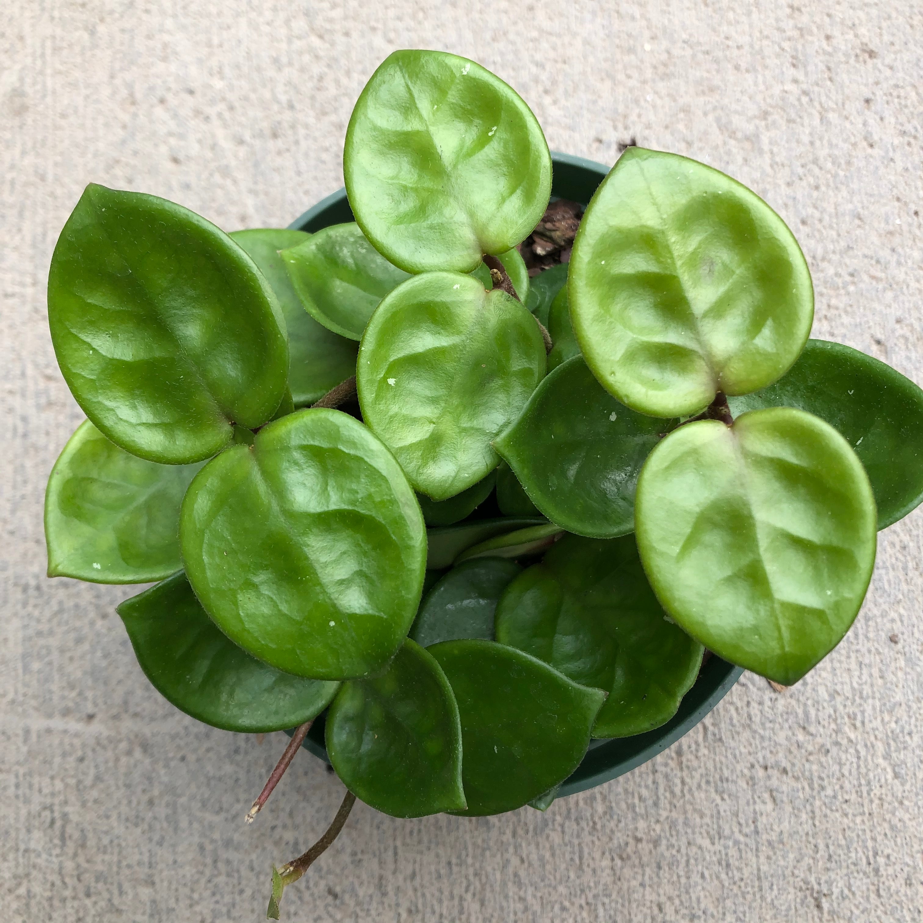 Hoya carnosa 'Chelsea' Hoya features thick heart shaped dimpled dark green leaves that show faint white spots randomly. It blooms in clusters of waxy pink to maroon porcelain like flowers with the fragrance of chocolate.