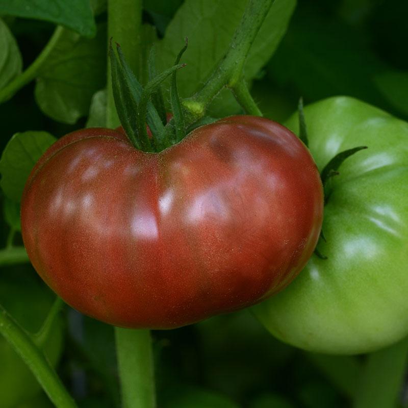 A gorgeous dusky purple beefsteak with rich, complex flavor, this hybrid is a cross between two heirloom taste-test winners, Cherokee Purple and Carbon. Makes one of the most delicious tomato sandwiches you’ll ever taste! Cherokee Carbon tends to produce more fruit than either of its parents. Plants can get pretty tall, so be sure to support them with strong stakes or sturdy cages.