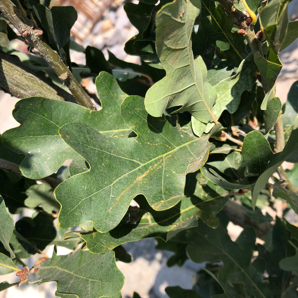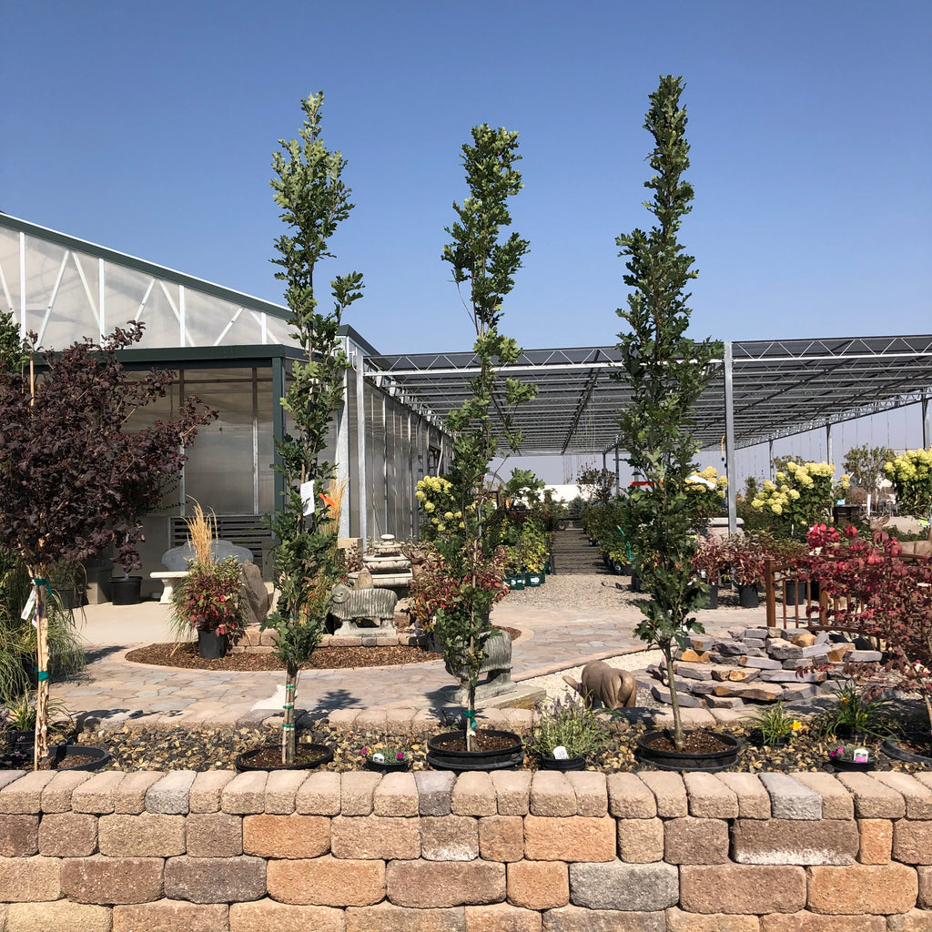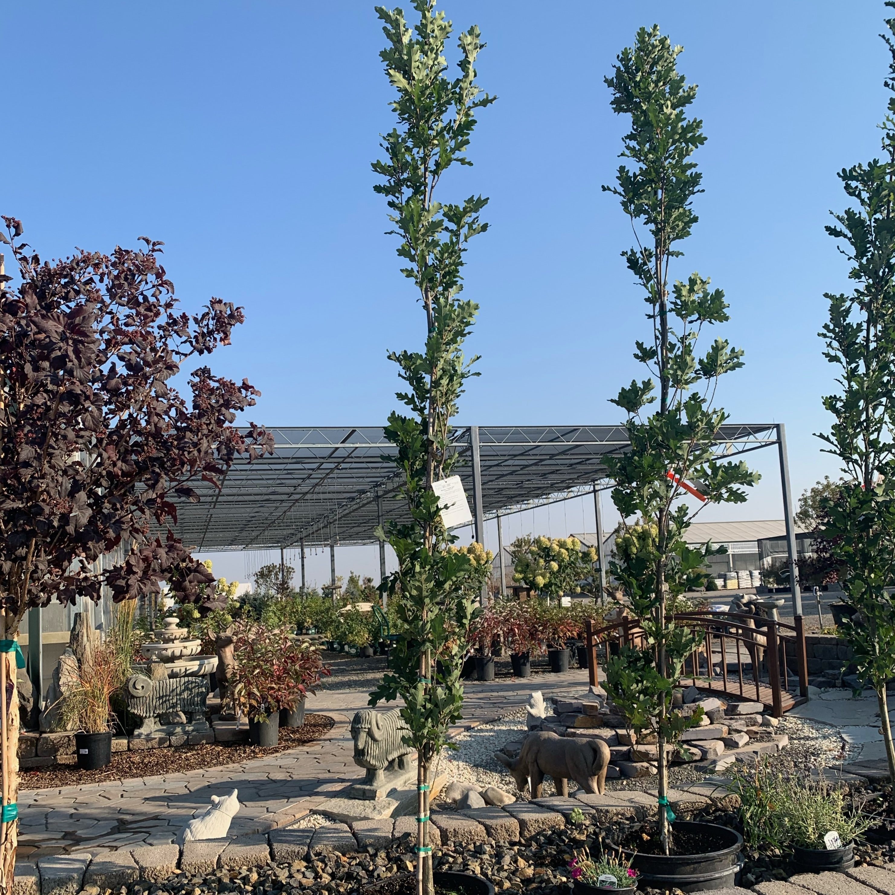 A stately columnar selection originating as a hybrid of Q. robur (English oak) and Q. alba (white oak), it combines the best characteristics of both varieties. Dark green, mildew resistant foliage turns a bright reddish hue in the fall. Fast growing, with a tight, upright habit, it is adaptable to a wide range of growing conditions. It's columnar form is good fit for narrow spaces as a screen or street tree.