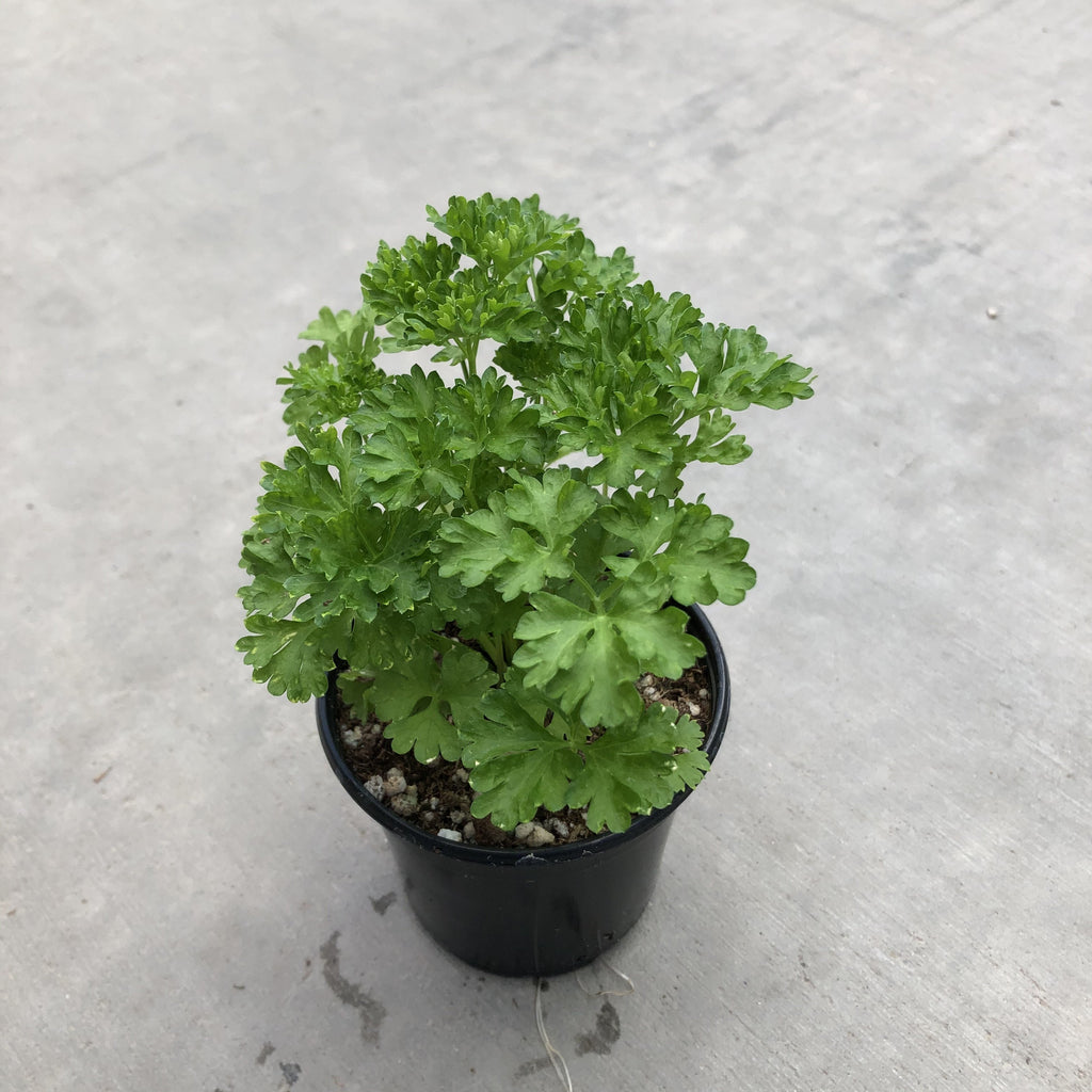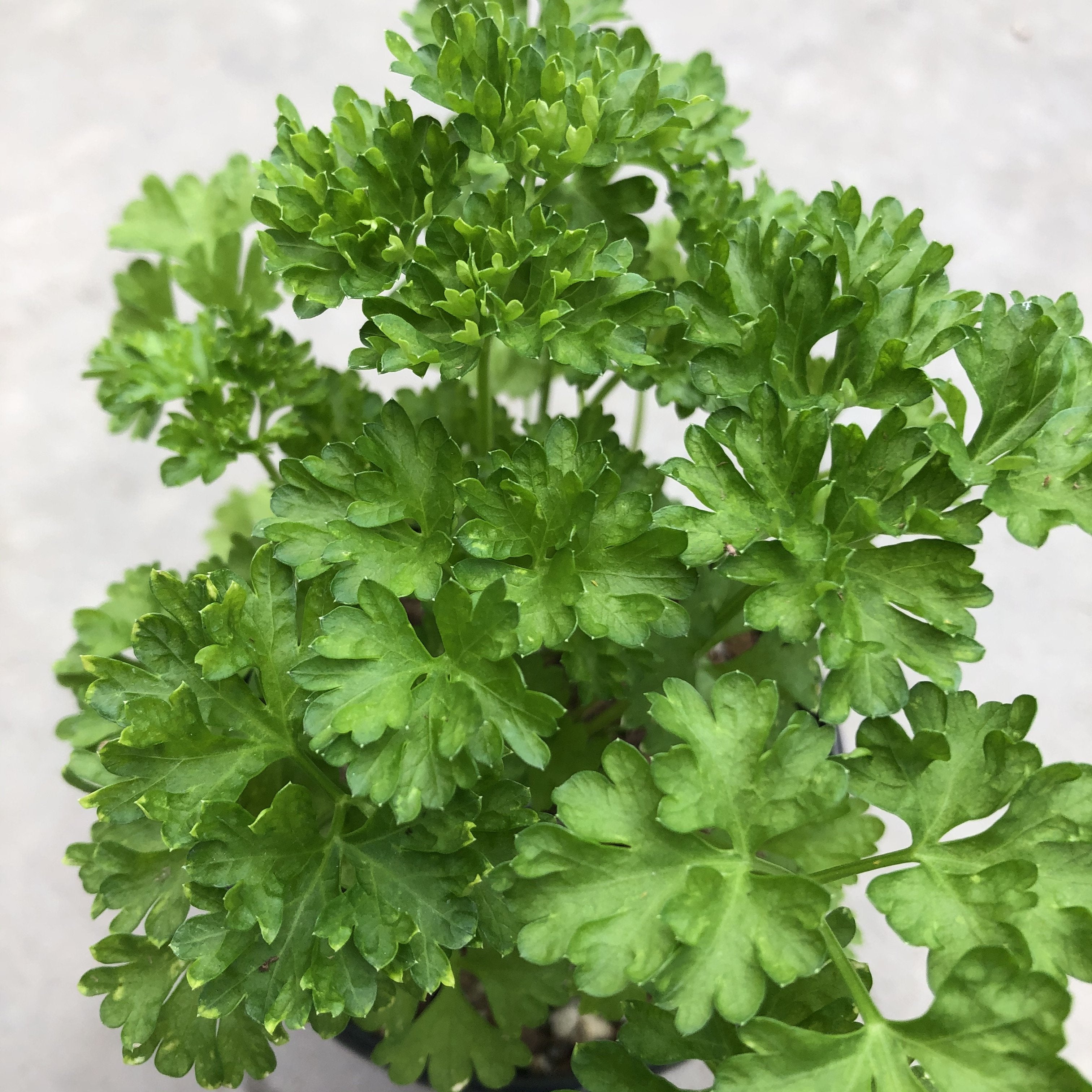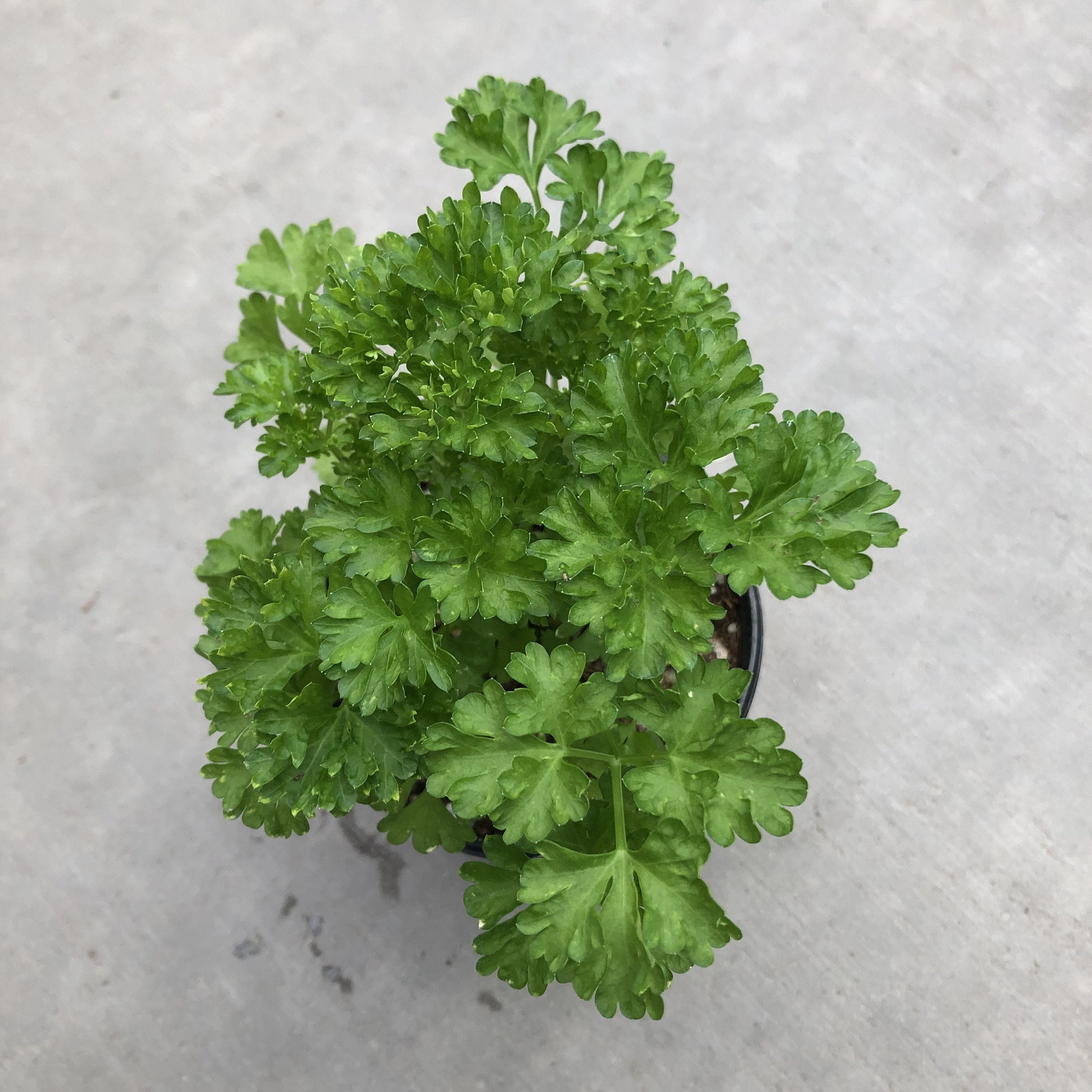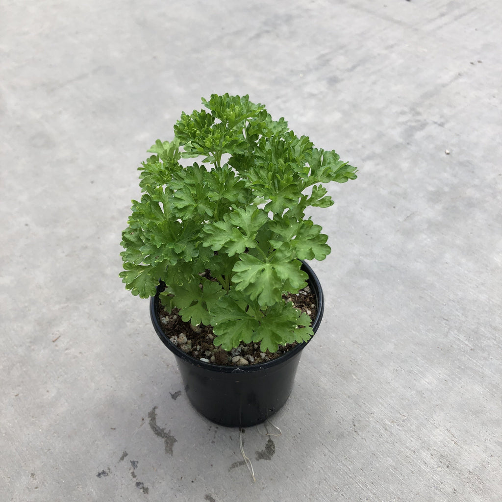 Curled parsley has beautiful, dark green leaves well known as the classic garnish for deviled eggs and an ingredient in tabbouleh (parsley salad) or white clam sauce for pasta. However, it has many more uses. Hardy through zones 7 and warmer, it is a great winter garden plant and looks beautiful in containers with pansies or other winter color. The nutritious leaves are high in iron and in vitamins A, C, and E. The high chlorophyll content makes it a natural breath sweetener, too. Frost tolerant. Great in containers.