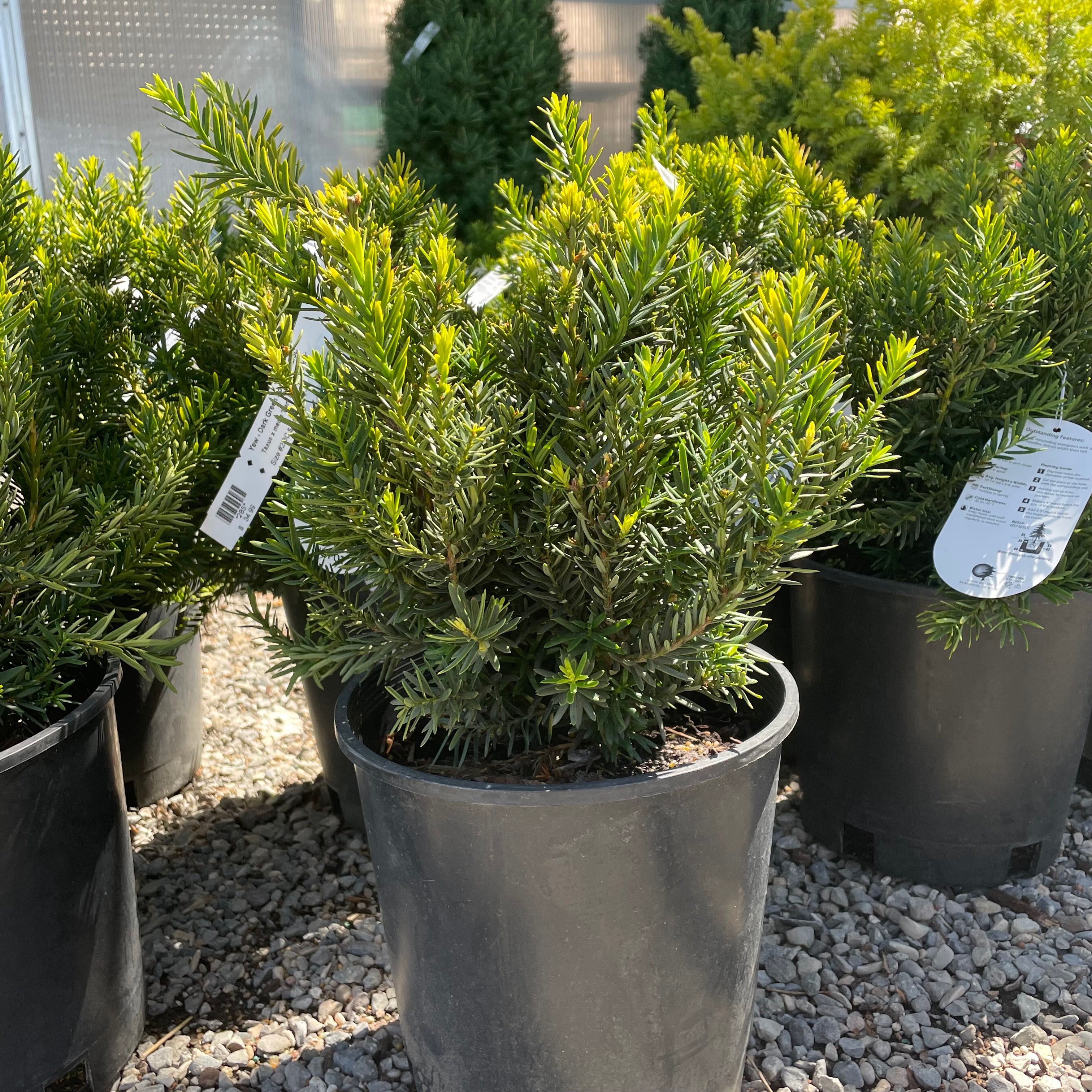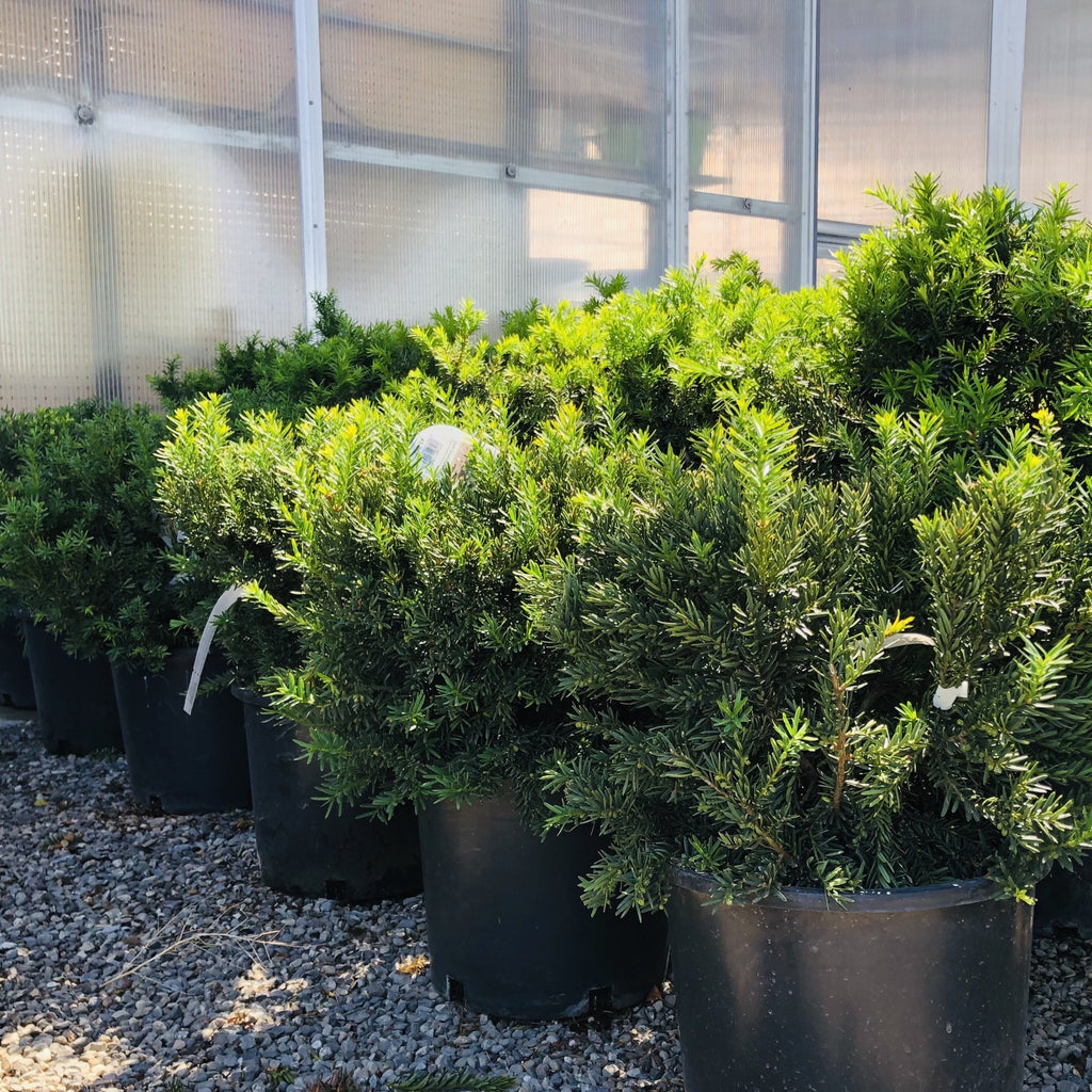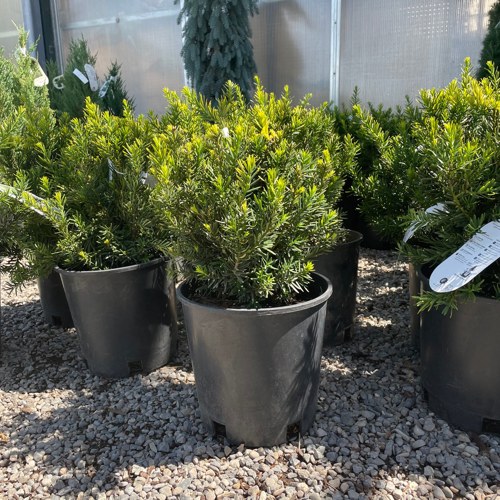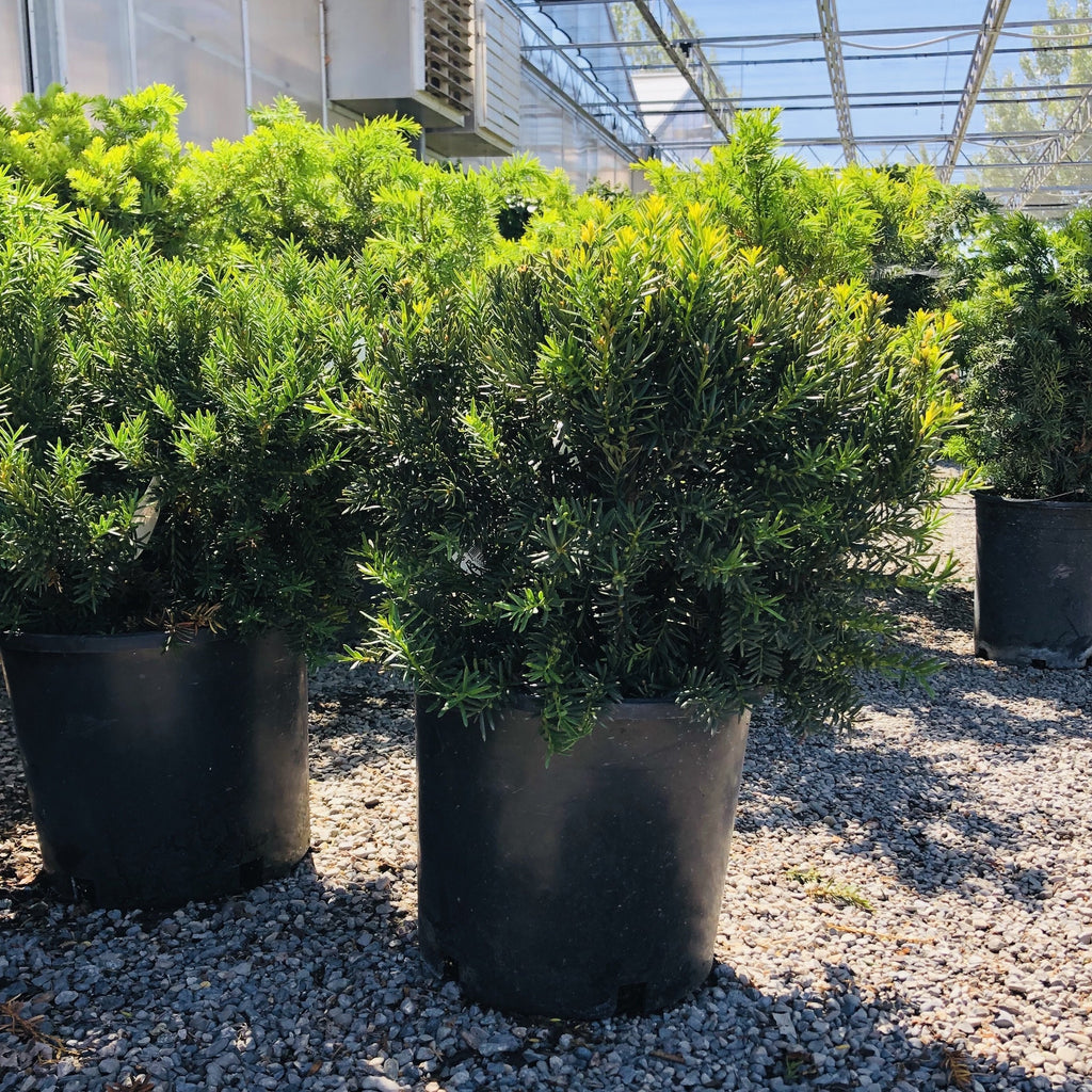 Dense, low, spreading shrub is an excellent basic foundation planting for hedge, screen or border. Dark green foliage backs scarlet berries. Versatile and durable, it is highly resistant to needle burn and tolerates shearing well.