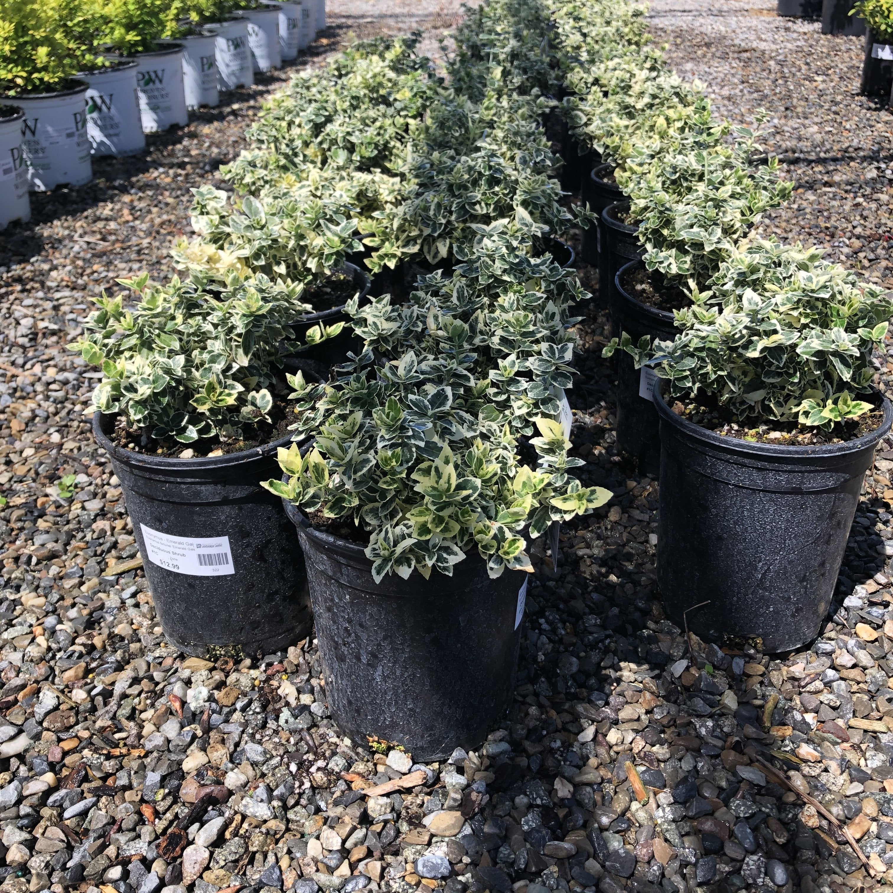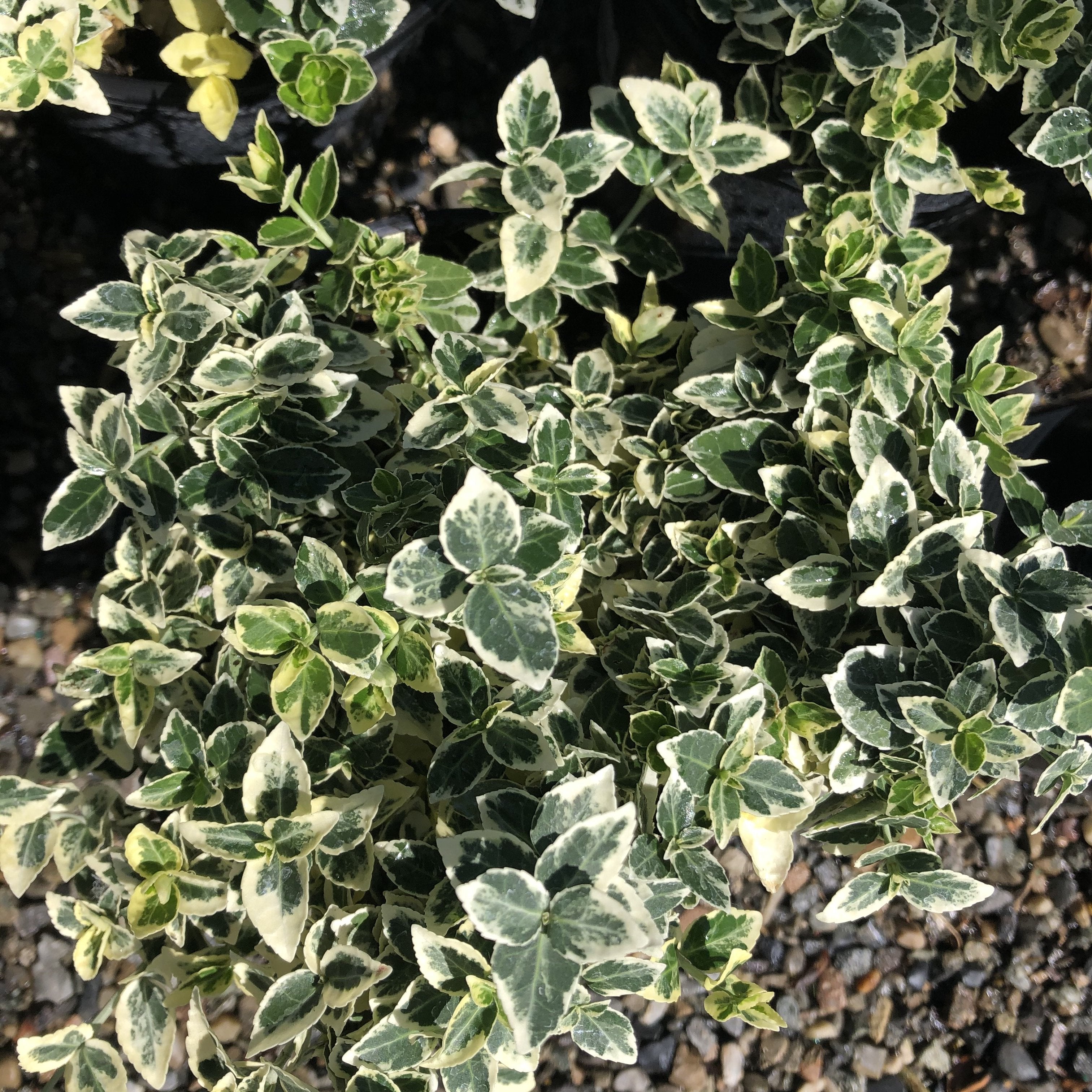 ‘Emerald Gaiety’ is a showy, white-edged, variegated, shrubby form of Wintercreeper.