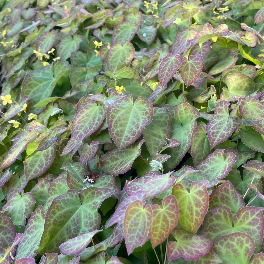 Epimedium x perralchicum ‘Frohnleiten’ is a spectacular variety of Barrenwort with beautiful red marbled leaves in spring. In May, the clumps are topped with clusters of large butter-yellow flowers. These tough plants can grow under trees where many others die off. Effective as a groundcover or tucked into shady gardens. Tolerates dry conditions once established.