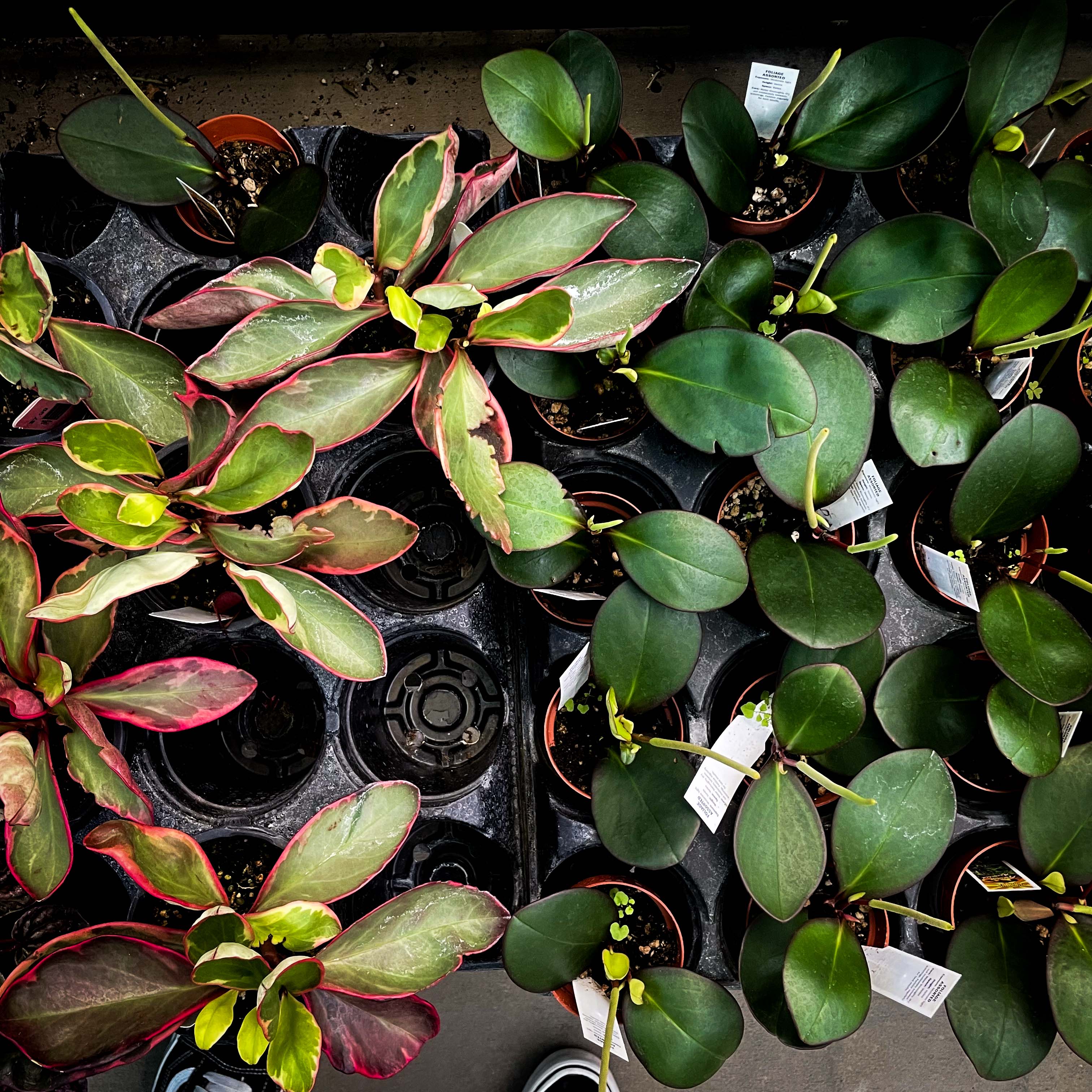 The leaves of Ginny are thick, and its edges are creamy-white with a slight touch of rosy-pink shade. The flowers produced by this plant are tiny, unscented, and sit on top of long spikes. Also referred to as Tricolor Peperomia.