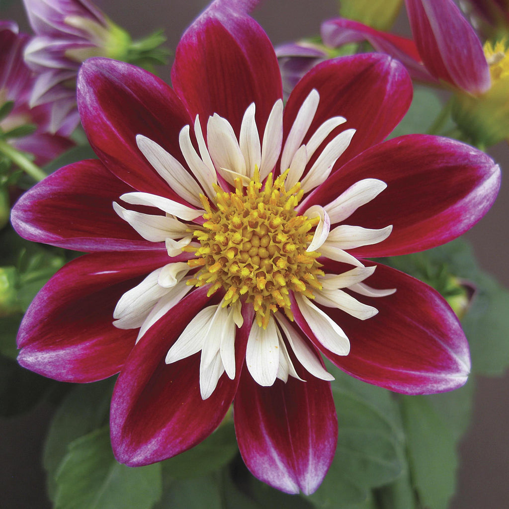 Dynamic semi-double, white rose bicolor flowers with a compact habit. Excellent for containers and borders.