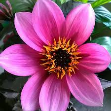 A delightful profusion of magenta single flowers pop against the nearly black, dissected foliage of this well-branched Dahlia. Excellent annual color for a container, or for accenting a bed or border. Plant in masse for a festive garden display.