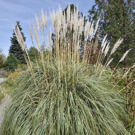 One of the loveliest ornamental grasses, superb as an architectural specimen or large accent. Foliage has a clumping habit; plant in groups to create a screen or windbreak. Long, showy, silvery white, silky plumes have gorgeous autumn coloring, persist into winter, and are superb in fresh or dried floral arrangements.