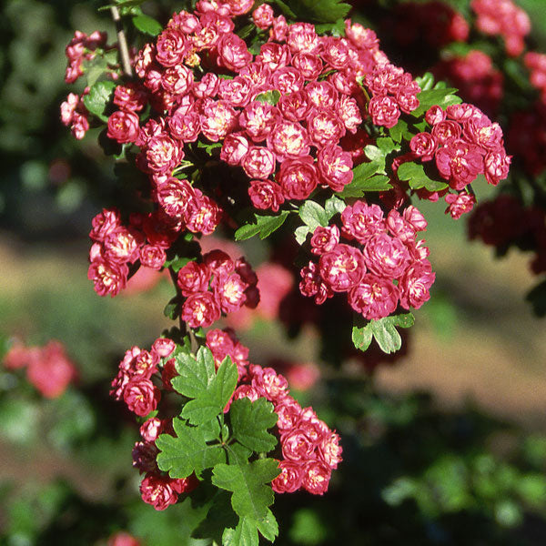 The brilliant colored flowers make this tree the showiest of all the Hawthorns in the spring. This selection is susceptible to leaf spot.