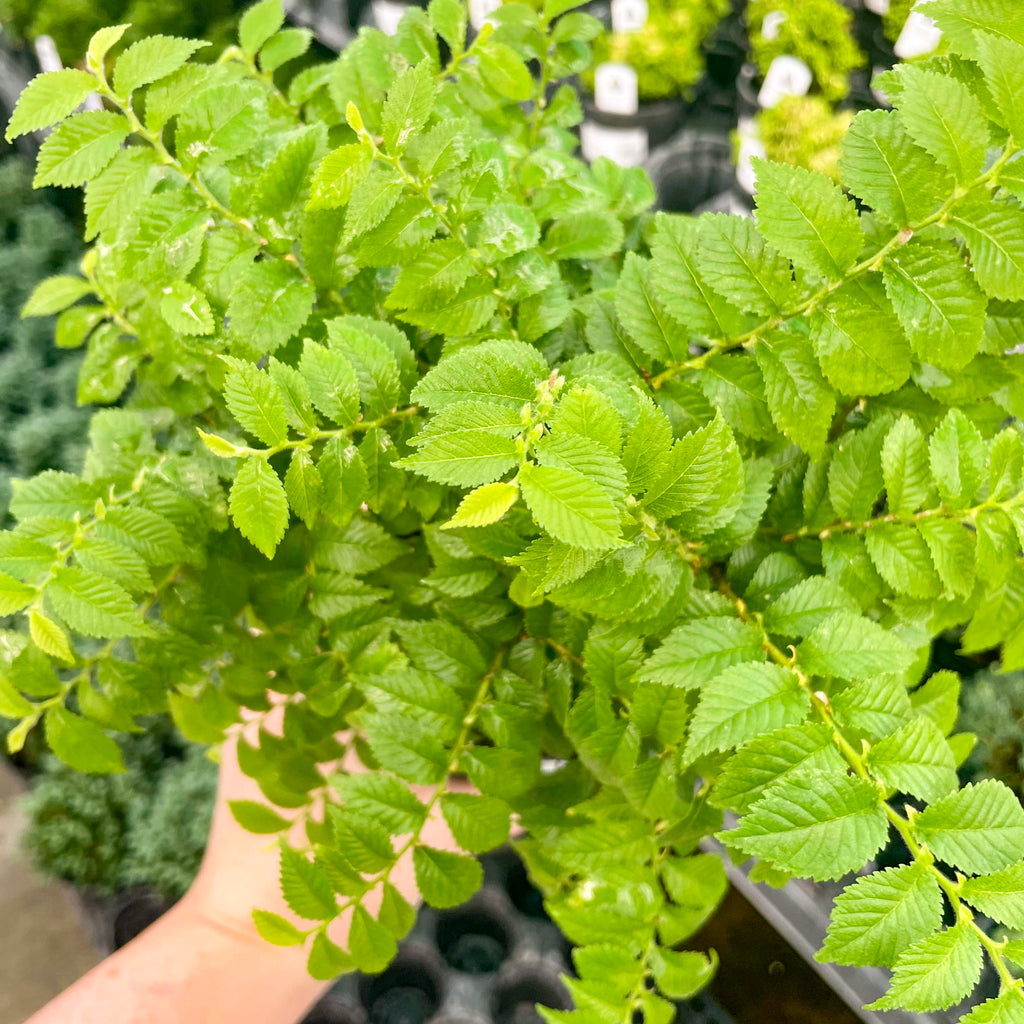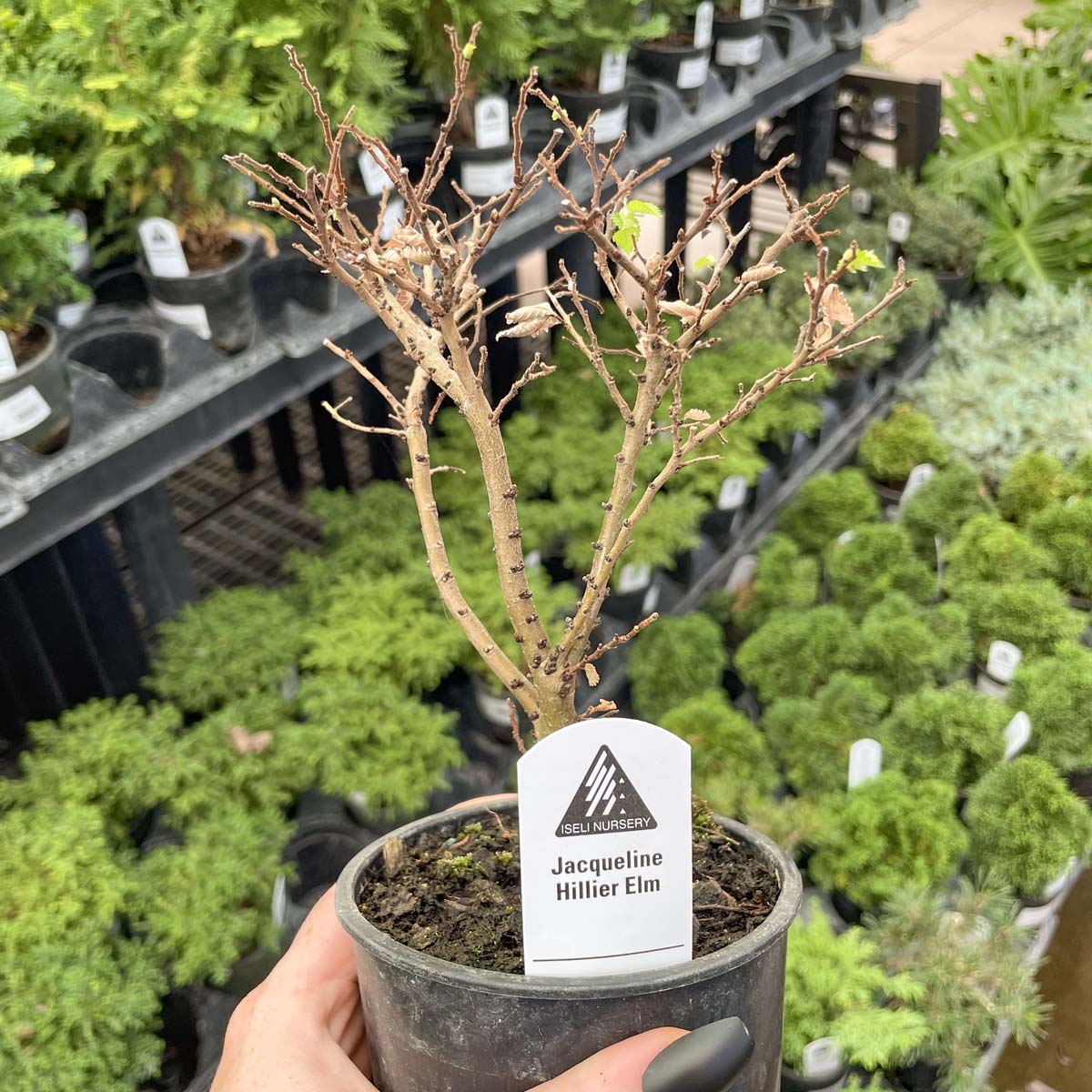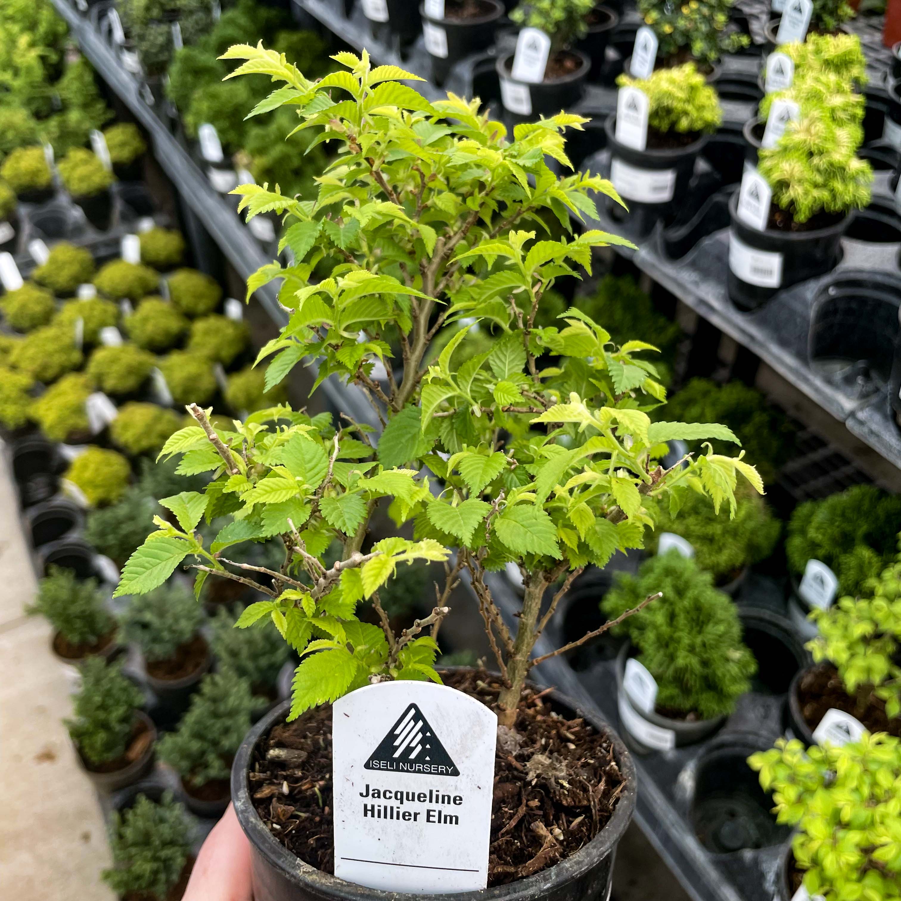 The Jacqueline Hillier Elm is a unique, slow-growing, dwarf elm that forms a graceful, densely branched canopy. Its miniature leaves perfectly mimic those of larger elms, making it an ideal choice for bonsai enthusiasts looking to capture the essence of an ancient tree in miniature form. This adaptable variety thrives in a range of soil types and tolerates exposed conditions, ensuring reliable growth in diverse settings.