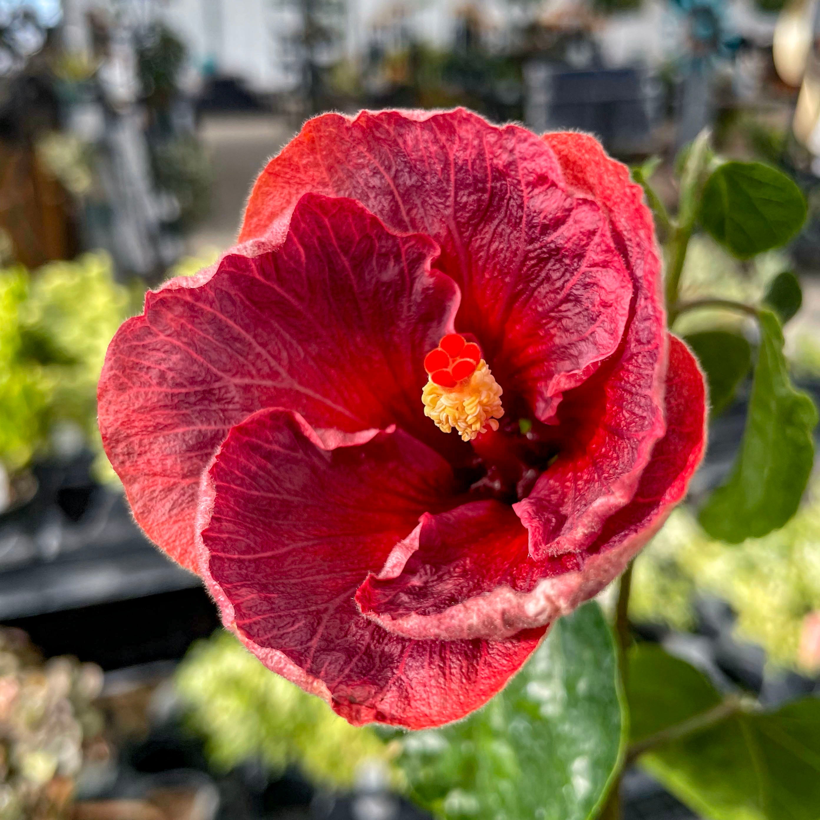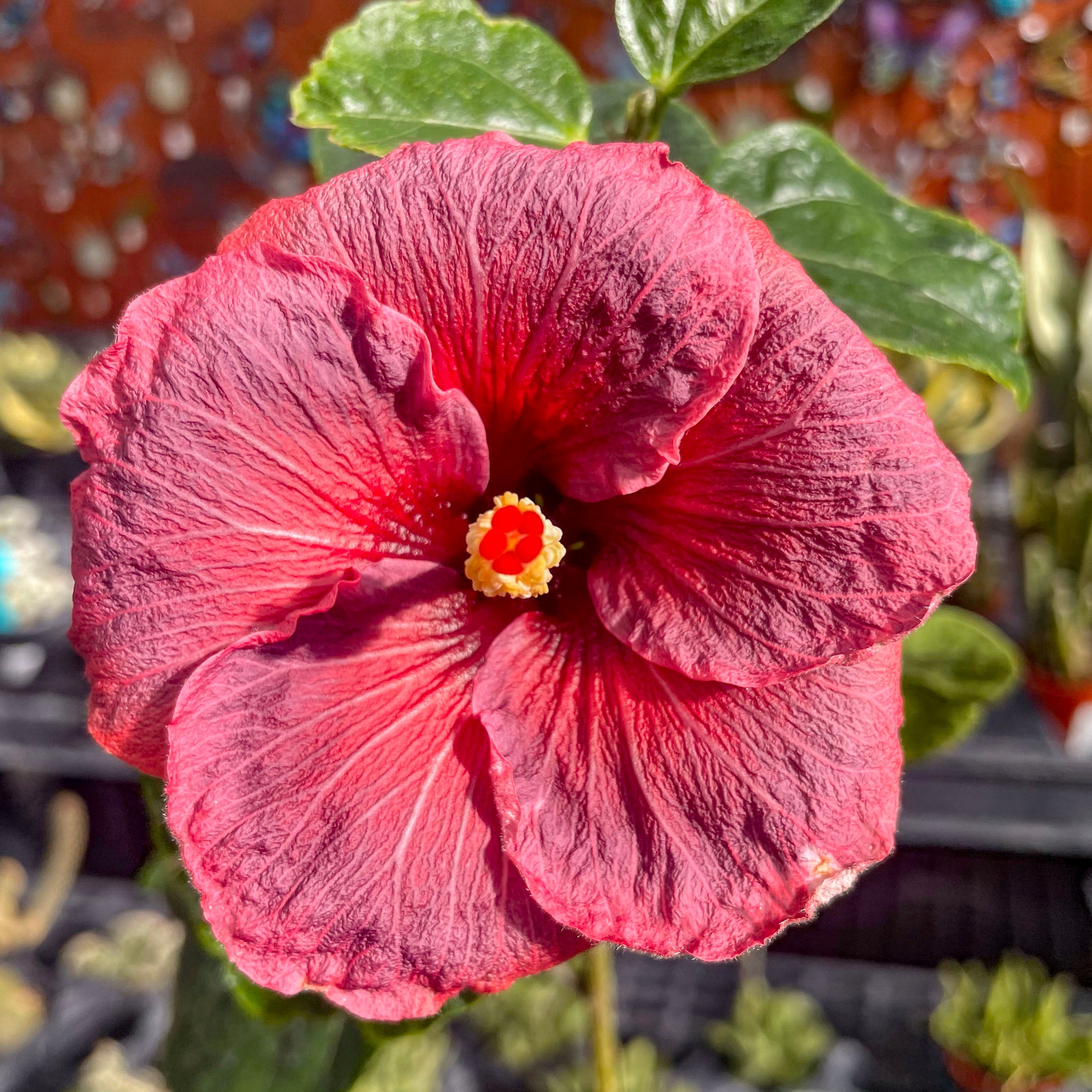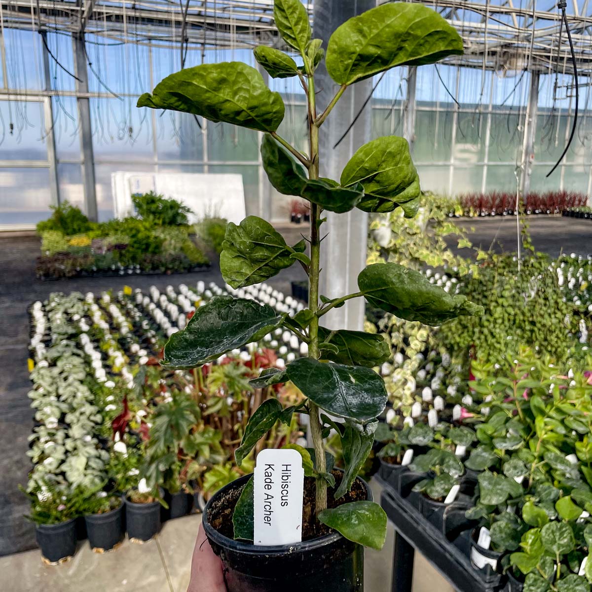 Hibiscus ‘Kade Archer’ is a showstopper with its stunning 6-7” blooms! The flowers feature violet-edged petals that blend into a bold red ring at the center, with a striking deep violet-black heart. Subtle highlights of violet-black add a touch of drama between the petals. As the flowers mature, they gently fade to softer tones by the second day. With a lovely, upright growth habit, this hibiscus is a prolific bloomer, especially when the temperatures are warm and sunny.