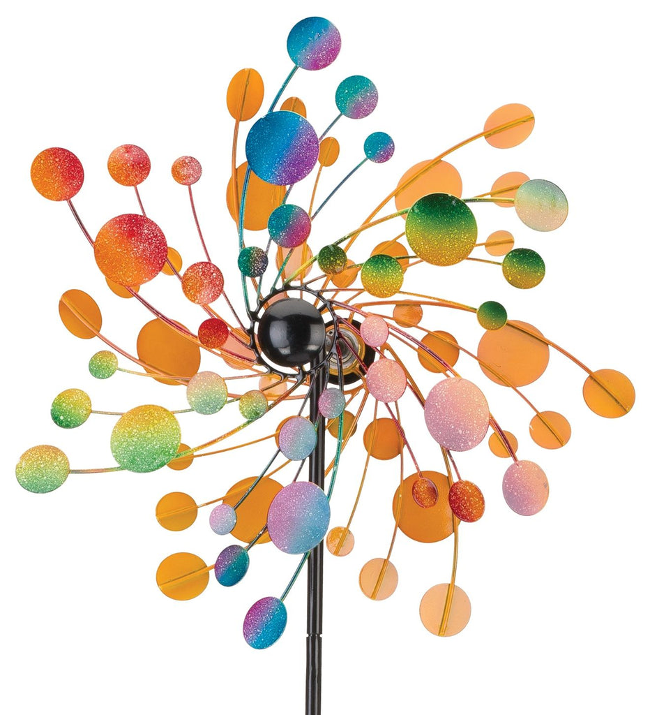 Add colorful excitement and pizazz to your landscape with this large 19" Confetti Wind Spinner. The back to back double spinners move in opposite directions creating a mesmerizing effect! One of Regal's top selling Windspinners.