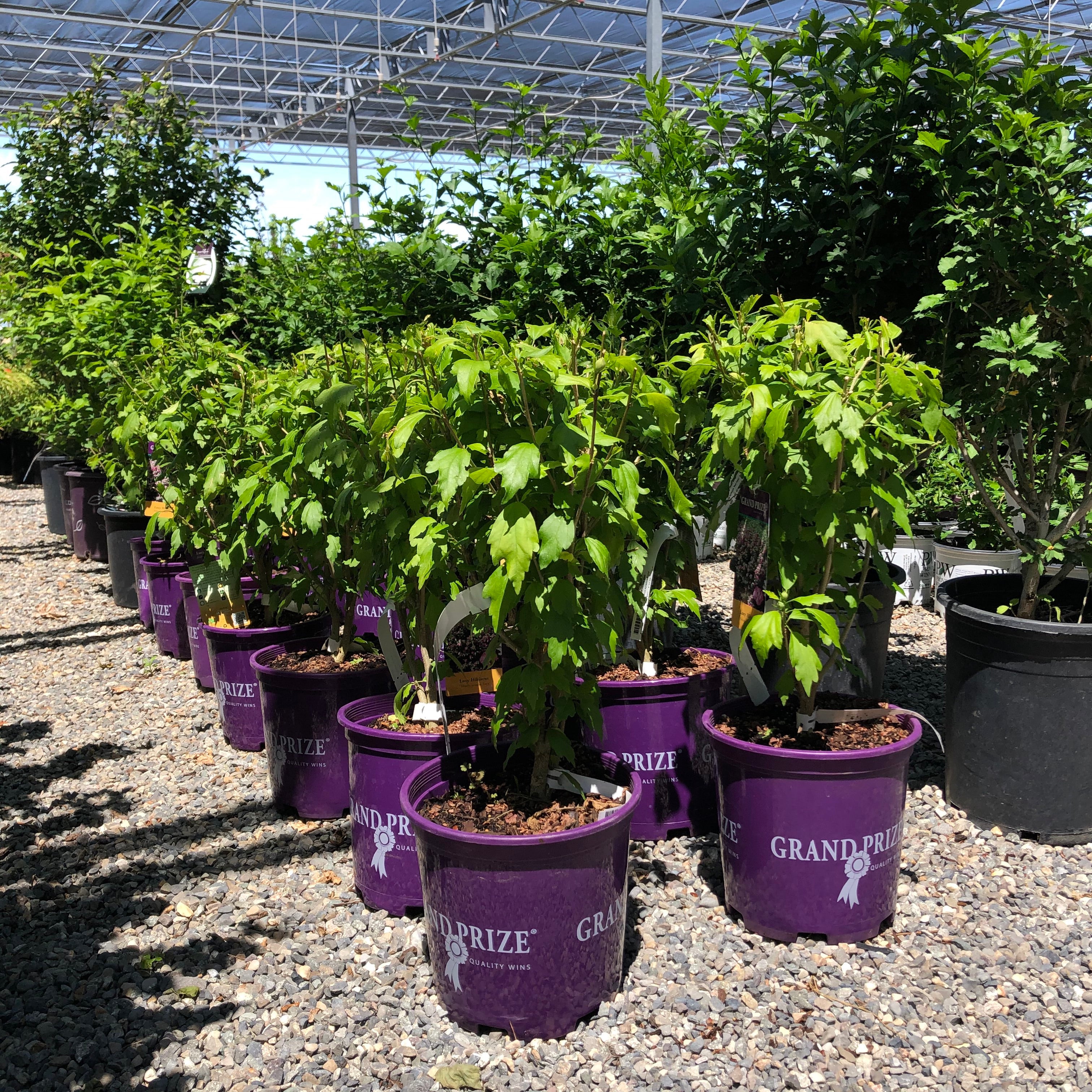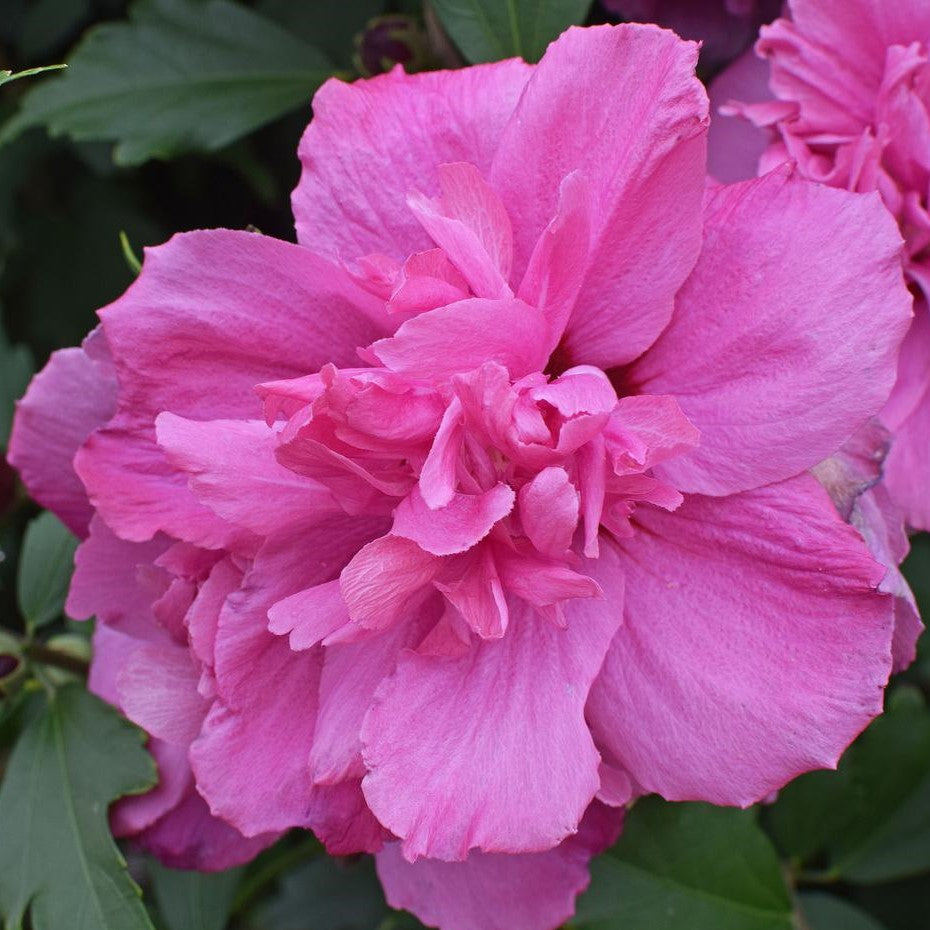 A stunning display of 3-5" masses of double reddish fuchsia flowers in summer with peak bloom period in August. Tolerant of summer heat and humidity, it is adaptable to most conditions. Prune to shape in spring. Use as an entrance into a garden or along walkways or drive.