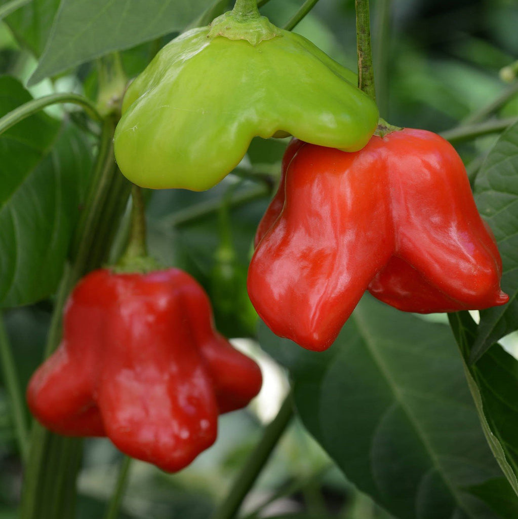 Add interest to your garden and delicious flavor to your meals with Mad Hatter peppers, which look (fittingly!) like little hats. The unique disc-shaped, lobed fruit matures from green to bright red, adding ornamental beauty to the veggie garden. The taste, though, is the real reason to adore Mad Hatter. Its slightly floral, citrus flavor remains sweet with just a touch of heat near the seeds. Popular in Bolivian and Peruvian dishes, this prolific plant produces plenty of peppers for salads, pickling, or appetizers. Try Mad Hatter peppers stuffed with cheese for a tasty treat.