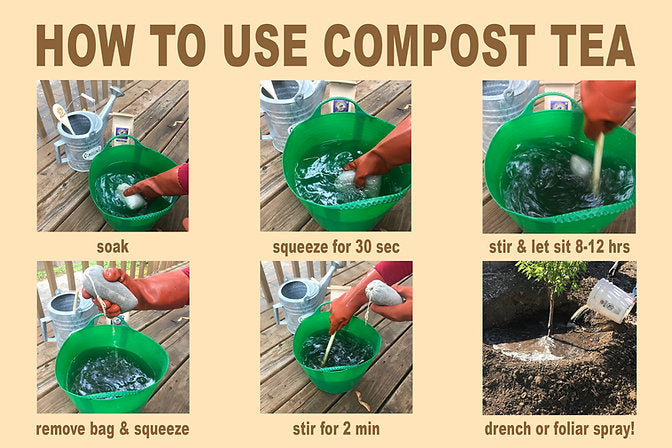 2. Steep compost tea bag for 8 to 12 hours, then use immediately.