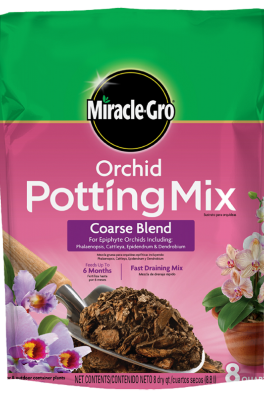 Miracle-Gro Orchid Potting Mix-Coarse Blend helps get your orchids off to the right start. This specially formulated mix provides quick drainage for orchid types that require good air movement and drier conditions between watering’s.