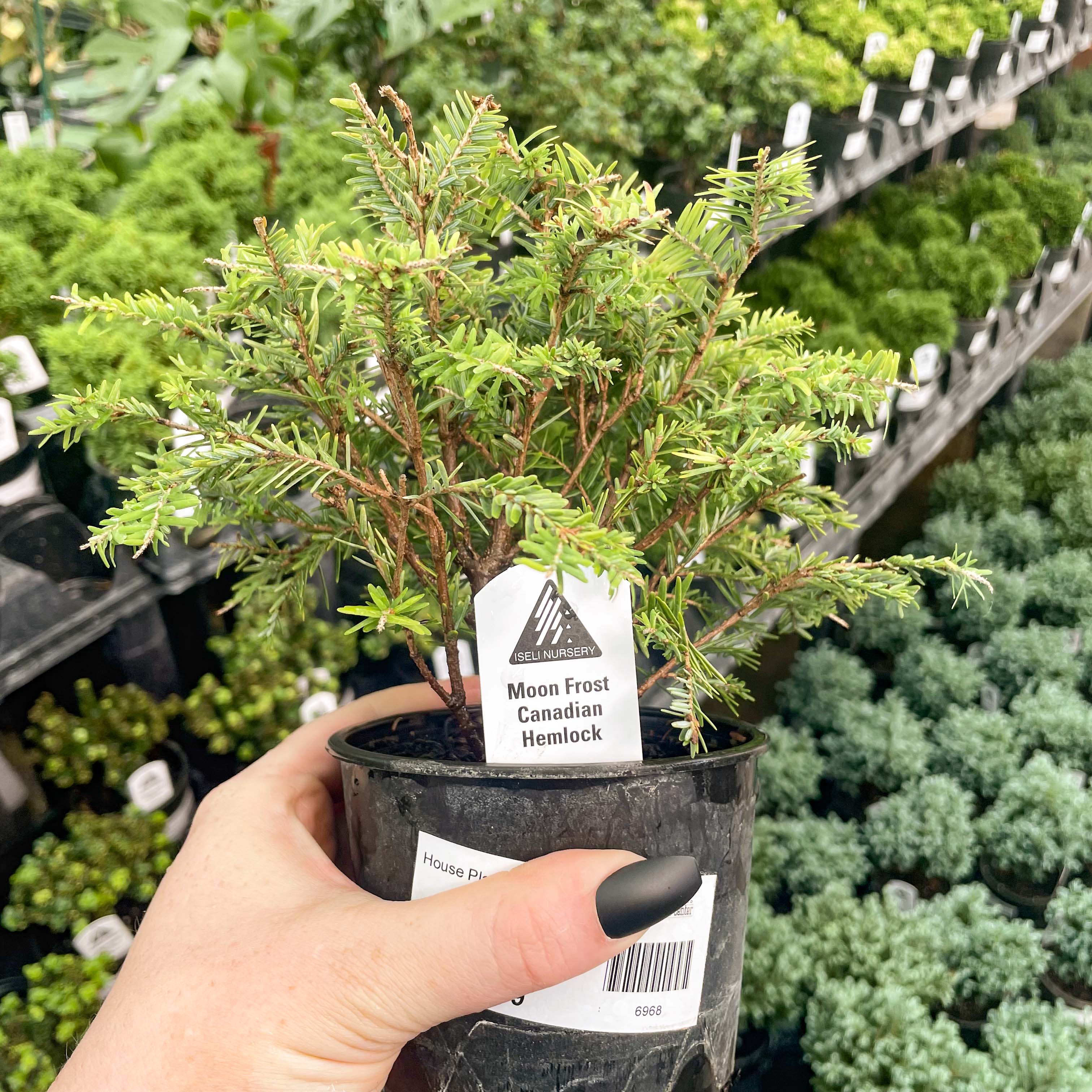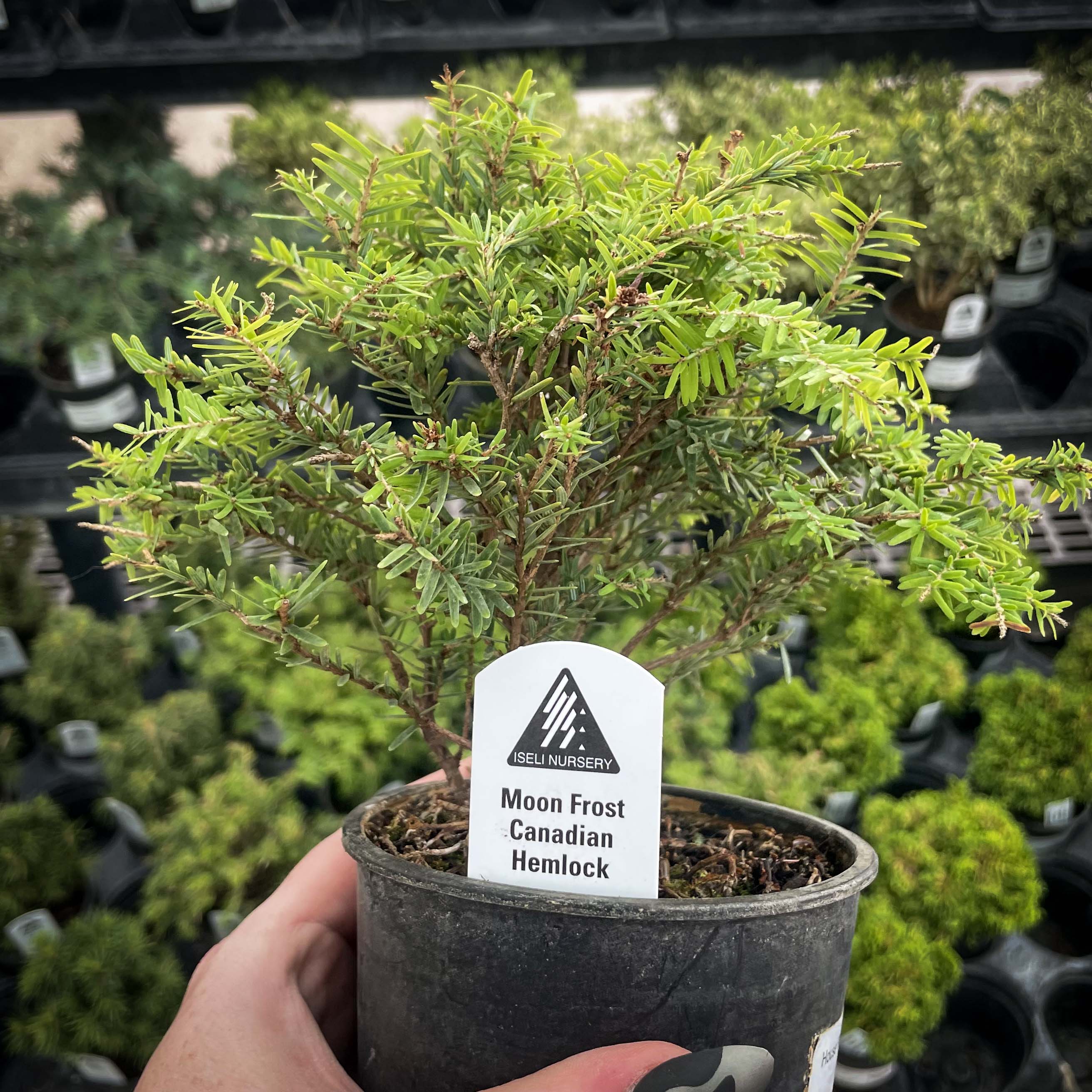 Initially forming a compact globe, ‘Moon Frost’ gradually broadens while maintaining its modest growth rate, ensuring it stays reliably small and manageable. Ideal for rock gardens, mixed borders, or container plantings, this hemlock adapts well to partial shade and moist, well-draining soil. Its distinctive coloration and tidy habit make it a standout choice for those seeking an elegant, low-maintenance conifer.