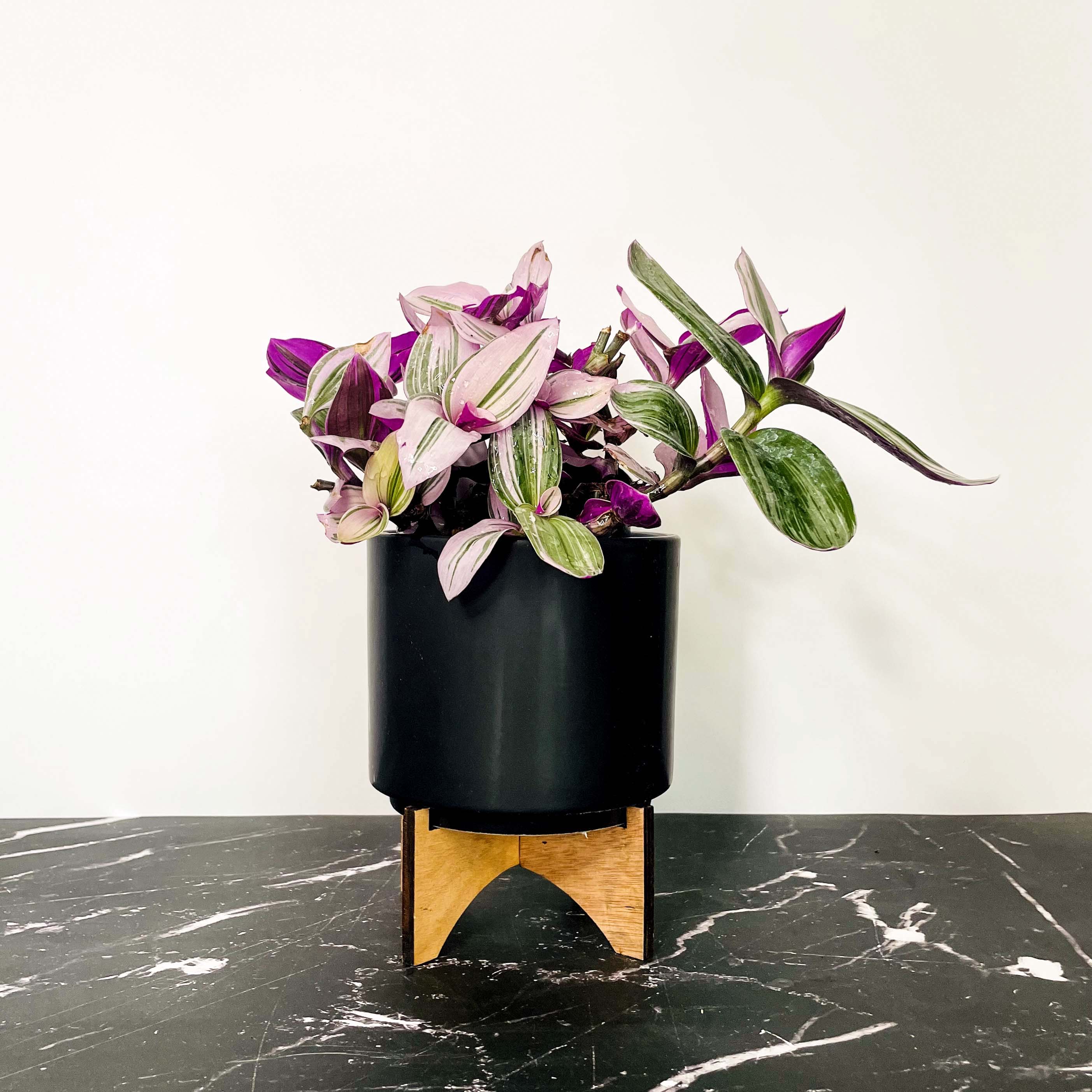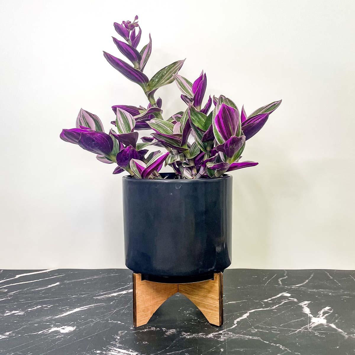 This variety stands out among inch plants thanks to its larger leaves and more abundant variegation. Easy to grow and eye-catching, Tradescantia ‘Nanouk’ adds a cheerful pop of color to both home and office environments.