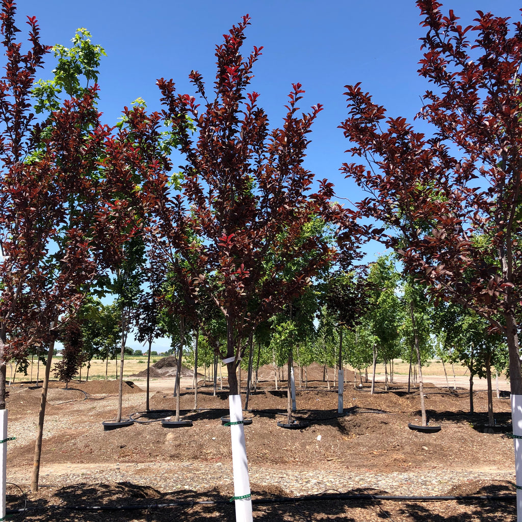 This superior small ornamental tree has beautiful reddish-purple foliage with bright red tips all summer long. One of the first trees to bloom in spring, it has fragrant pink flowers that are followed by purple fruit..
