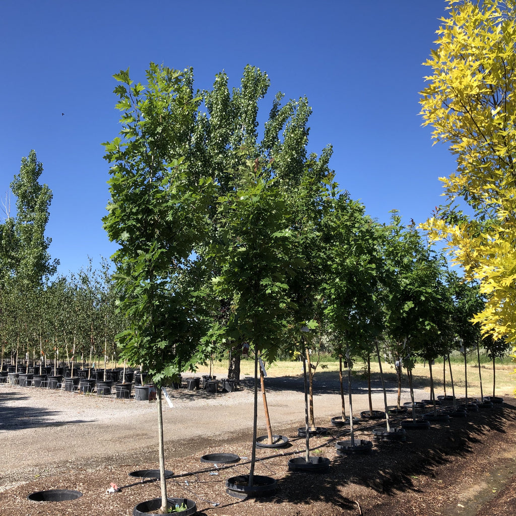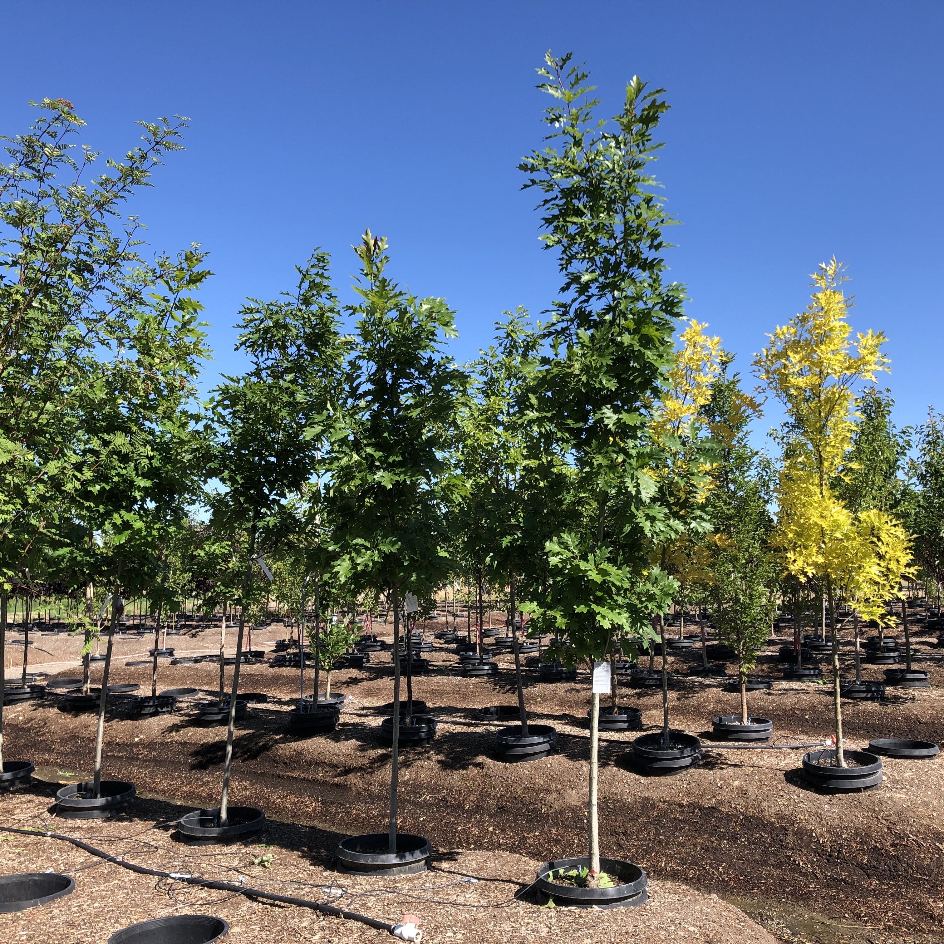 The fastest growing oak and one of the easiest to transplant, this tree is great for street use or as a landscape tree. The foliage is dense and lustrous and leaves hang on the tree into winter.