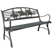 Bring the spirit of the rodeo to your own backyard with our Cowboy Roping Bench. Featuring a dynamic rodeo scene, this premium quality garden bench boasts a maintenance-free powder coat finish with hand-painted highlights. Like all Painted Sky products, it is artist-designed! Pairs well with other swings, gliders, benches and chairs from our Western Collection.