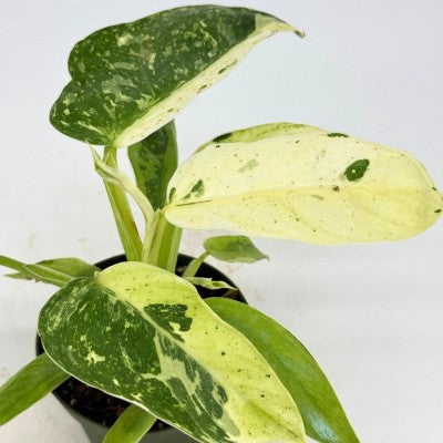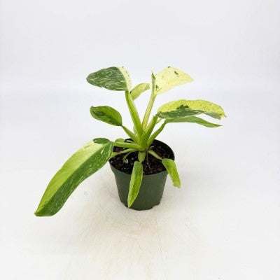 Philodendron 'Jose Buono Fiesta' is best known for its elongated heart-shaped leaves with green and white marble variegation. Its unique foliage creates an exotic, lush vibe in any indoor space.