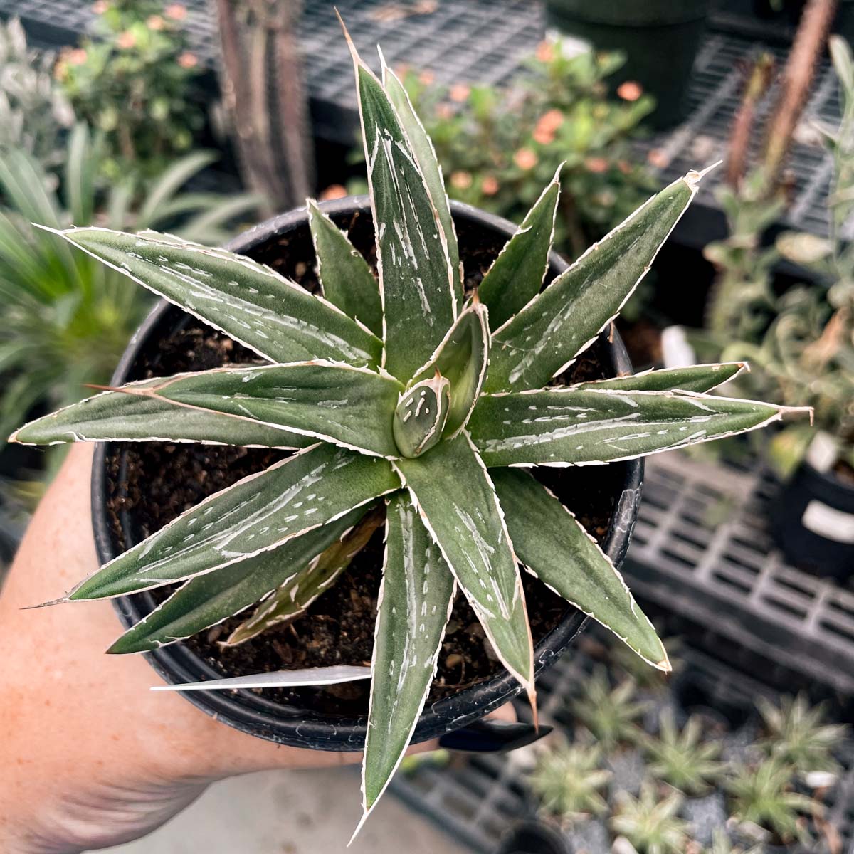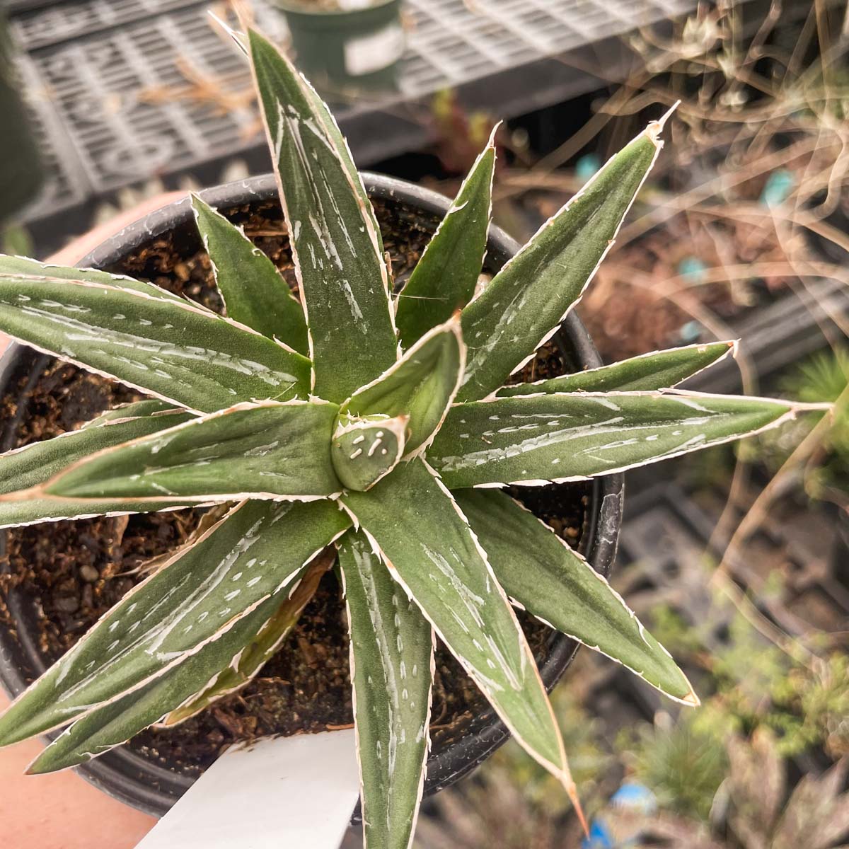 Queen Victoria Agave is known for its white lined, beautifully shaped leaves that form a spherical habit. 'Porcupine' was selected from the species for its compact habit.