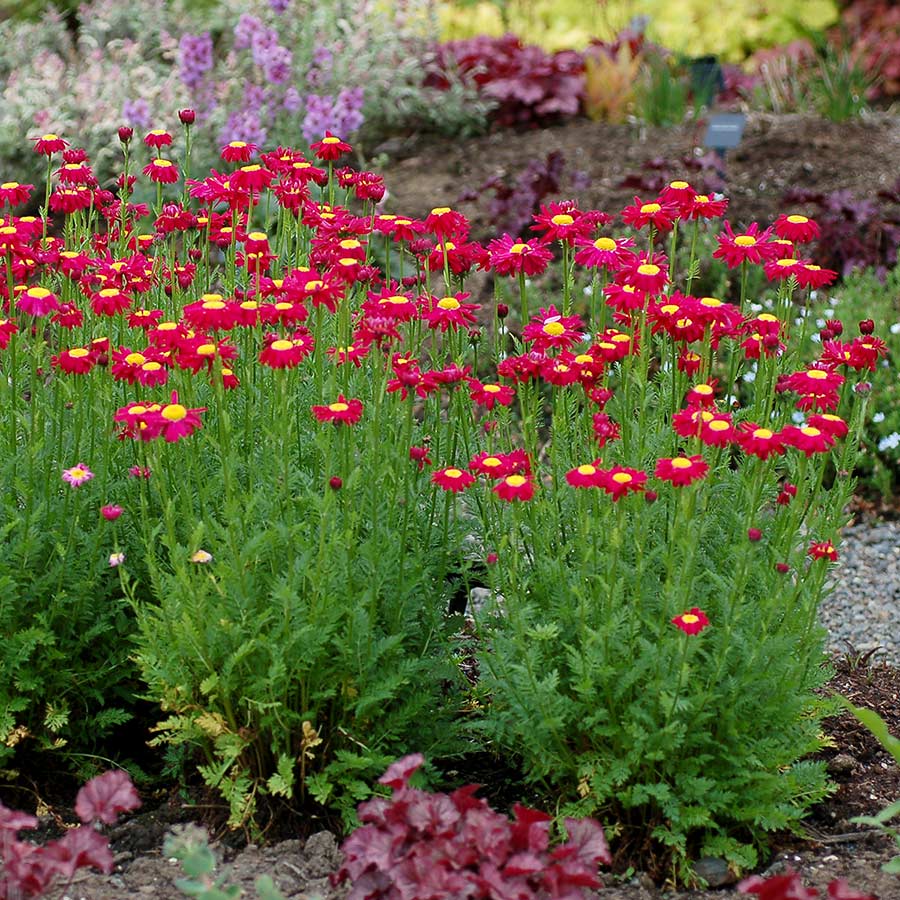 This new and improved Painted Daisy will impress you in many ways. It is very showy with its glowing, deep pink blooms that bloom early spring over a long period. RADIANT™ Deep Pink has a great compact habit (only knee high) that doesn't fall open. A tough, easy, cold hardy perennial.