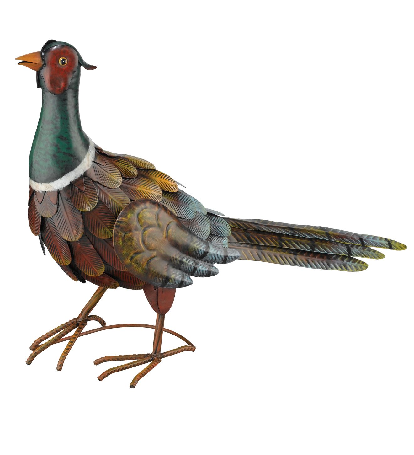 Our beautiful Pheasant Décor is crafted out of sturdy metal with full feather detail. Ornately hand-painted for a realistic appearance. Wonderful piece for the fall harvest season or anytime. Pairs nicely with the 'Down' version (SKU 10325).