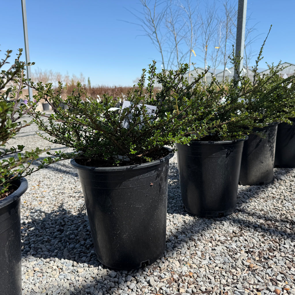 Rock Cotoneaster, is a coarse, dense, slow-growing, semi-prostrate shrub featuring stiff, flattened, horizontal branching that becomes somewhat tiered over time.