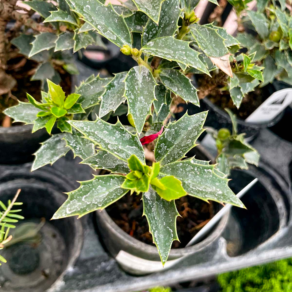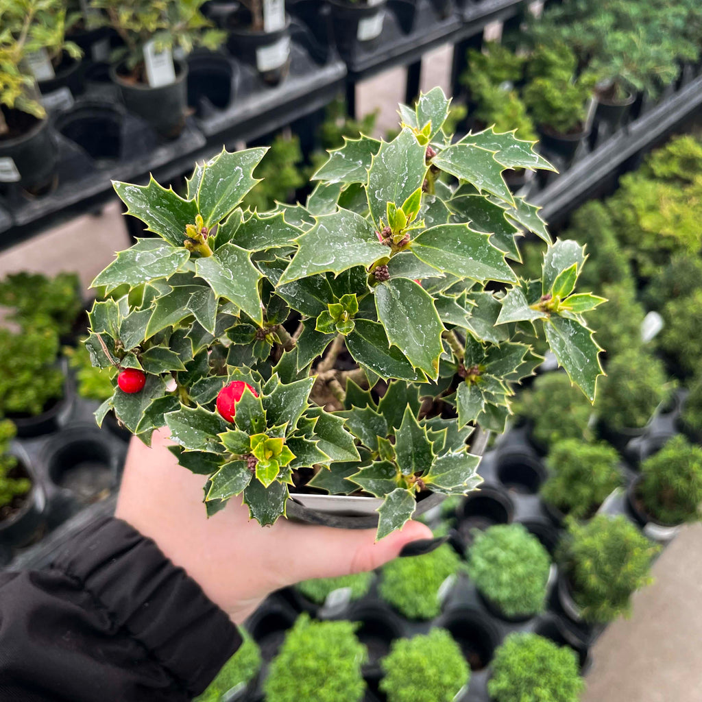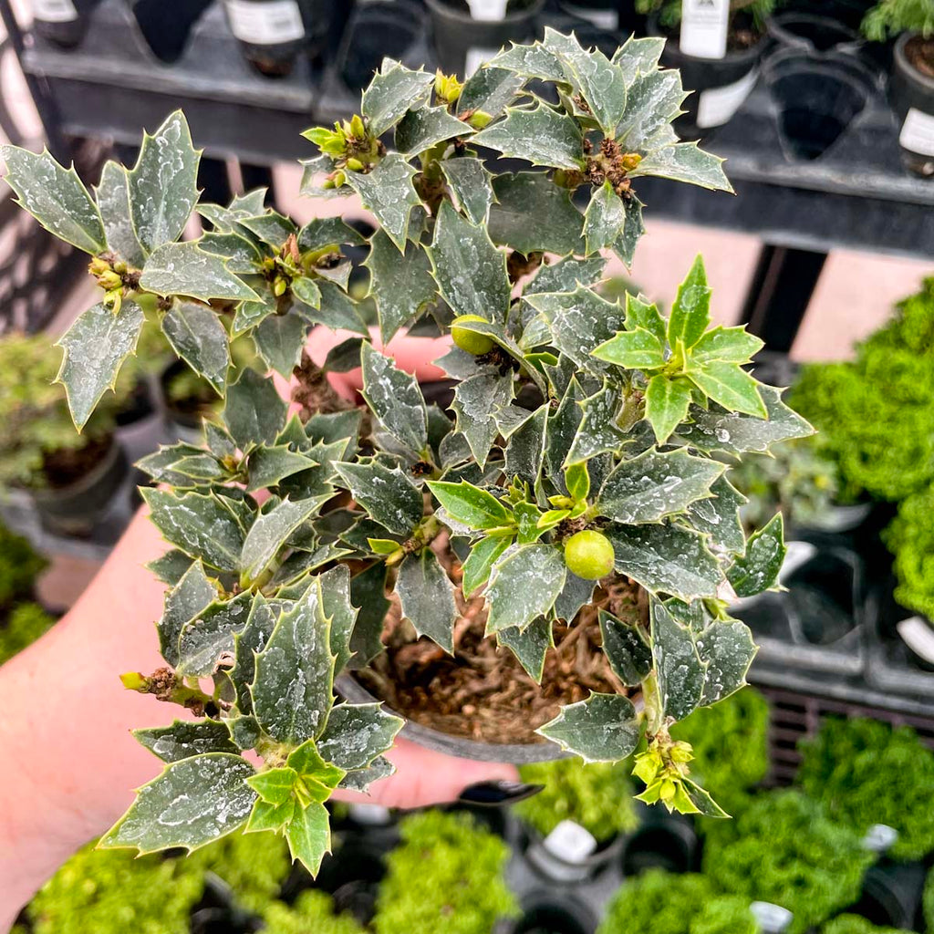 Ilex x ‘Rock Garden’ is a diminutive female holly that stands out for its glossy, deep green foliage and dense, globose growth habit. Maturing to less than 1 foot in height, this compact variety is perfect for troughs, rock gardens, small landscapes, or even as a bonsai specimen. Despite its small stature, ‘Rock Garden’ adds year-round interest with minimal maintenance, making it a charming solution for tight garden spaces or containers.