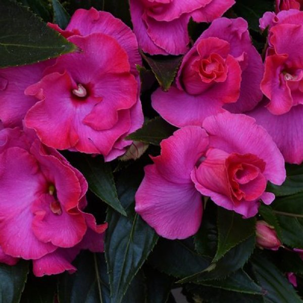 Dark green leaves provide an illuminated backdrop for a profusion of showy hot pink flowers that smother these compact, neatly mounding plants from spring to fall. Use this showstopper to light up a shady area of your garden, or set it in a bright spot where sunlight will enhance the color show. Heat tolerant.