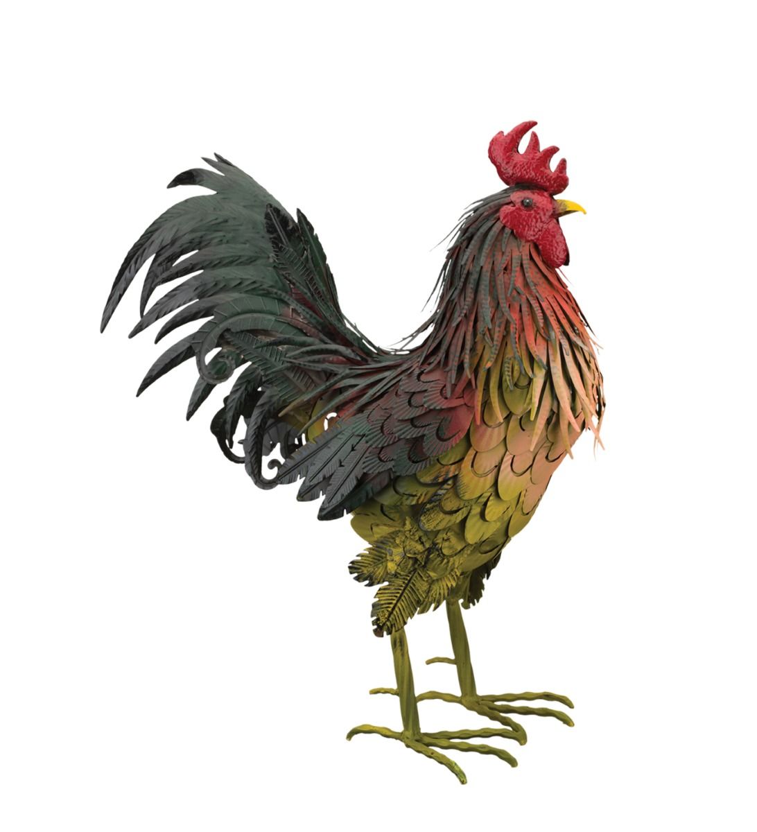 Napa Roosters have some of the most popular colorations and feather details of any of Regal's rooster collections. The all metal construction of this larger 26" size is quite impressive. To save on shipping costs, the legs and tail feathers are 'knock down'. Pairs nicely with the 26" version (SKU 11934).