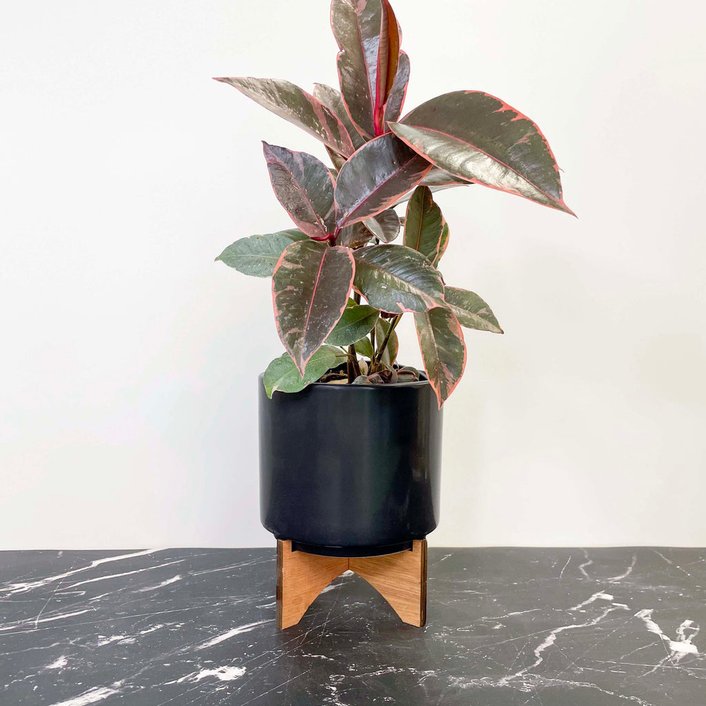This low-maintenance plant thrives in bright, indirect light and requires moderate watering, allowing the top layer of soil to dry between waterings. Its striking foliage makes it an ideal statement plant for indoor spaces or as a decorative addition to summer patios. With its vibrant color palette and easy-care nature, the Ruby Rubber Tree is perfect for plant enthusiasts of all levels.