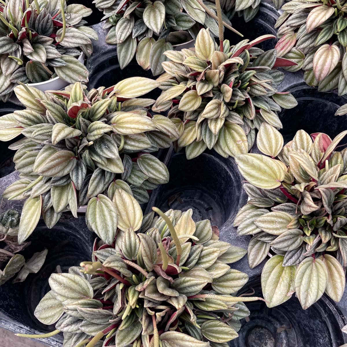 Thanks to its succulent-like stems, 'San Marino' may appear droopy when overwatered, but it quickly perks up as the soil dries out. With a color palette that shifts from vibrant greens to subtle reds and silvery whites, this distinctive Peperomia effortlessly complements any decor style while adding a touch of natural elegance.