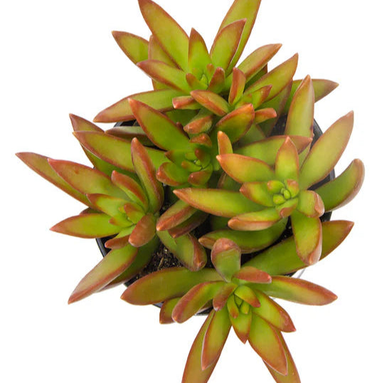 Sedum adolphi Firestorm™ is a striking selection of golden sedum, displaying cant-miss red margins in bright light or cool temps. It is an incredibly versatile rangy color accent in succulent landscapes, borders and along pathways, or for spilling forth out of planters. Star-shaped white flowers add winsome contrast to the greenish-yellow leaf color and those fiery margins. Thrives in poor, sandy soils.