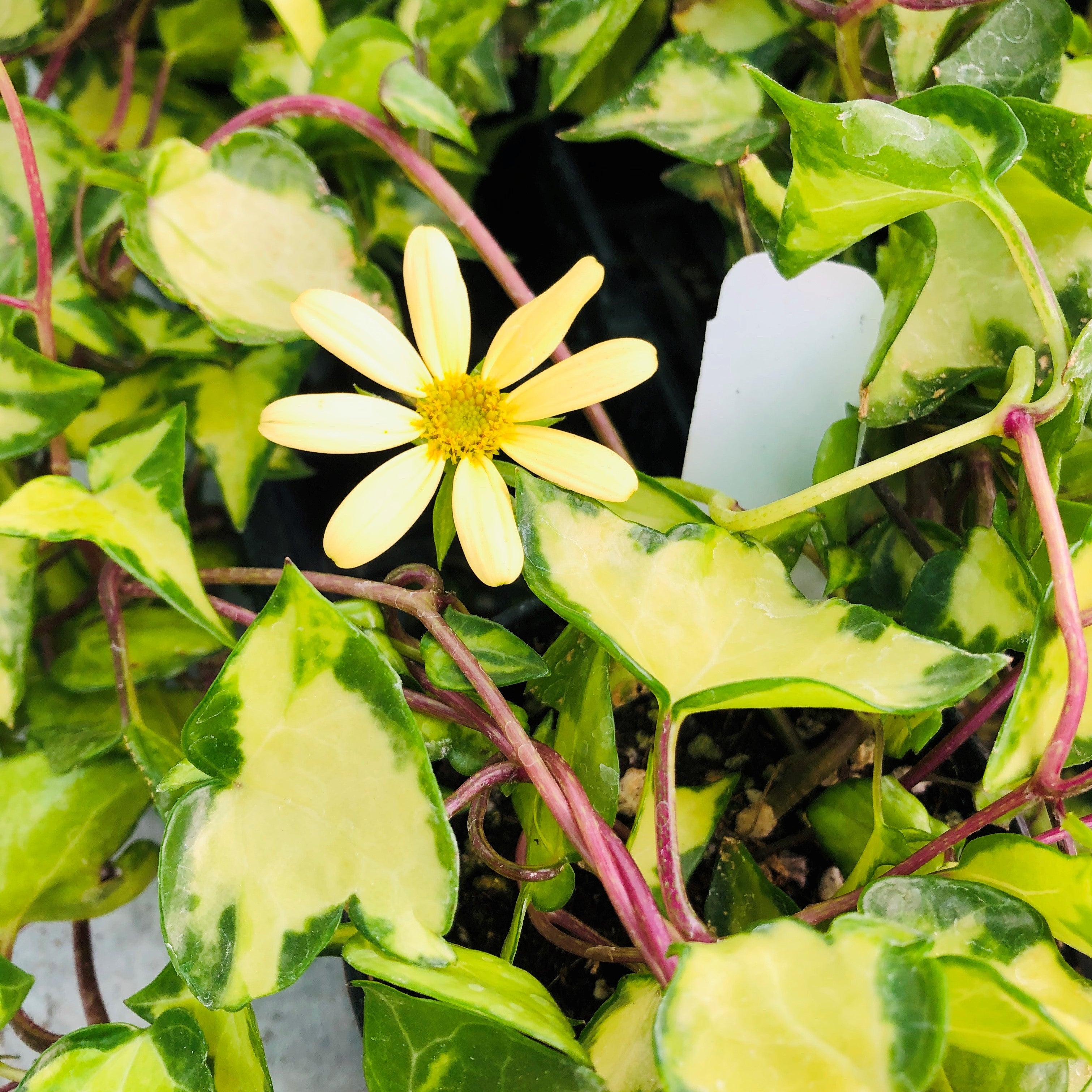 In a well-lit spot, Variegated German Ivy will reward you with charming yellow daisy-like flowers, enhancing its decorative appeal. This plant is easy to care for, thriving in bright, indirect light and requiring regular watering to maintain its lush appearance. Whether used for climbing up trellises or spilling over the edges of baskets, this ivy is a stunning addition to any plant collection.