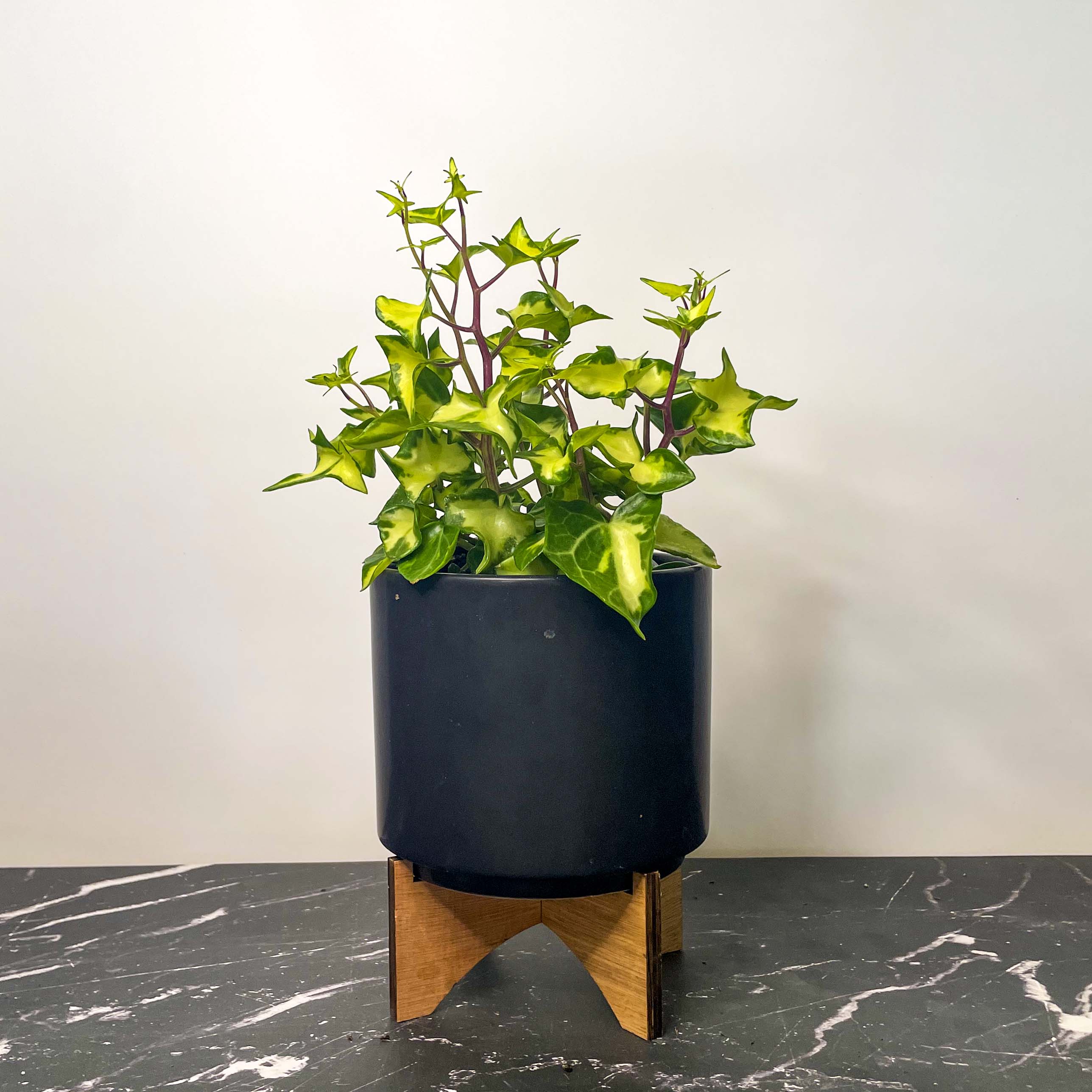 Senecio mikanioides, or Variegated German Ivy, offers a lush, vibrant look similar to traditional English Ivy, though it is not a true ivy. This plant boasts plump, fleshy leaves beautifully variegated with shades of green and yellow. It's a versatile climber that can also flourish in a hanging basket, adding a cascade of color to any indoor or outdoor setting.