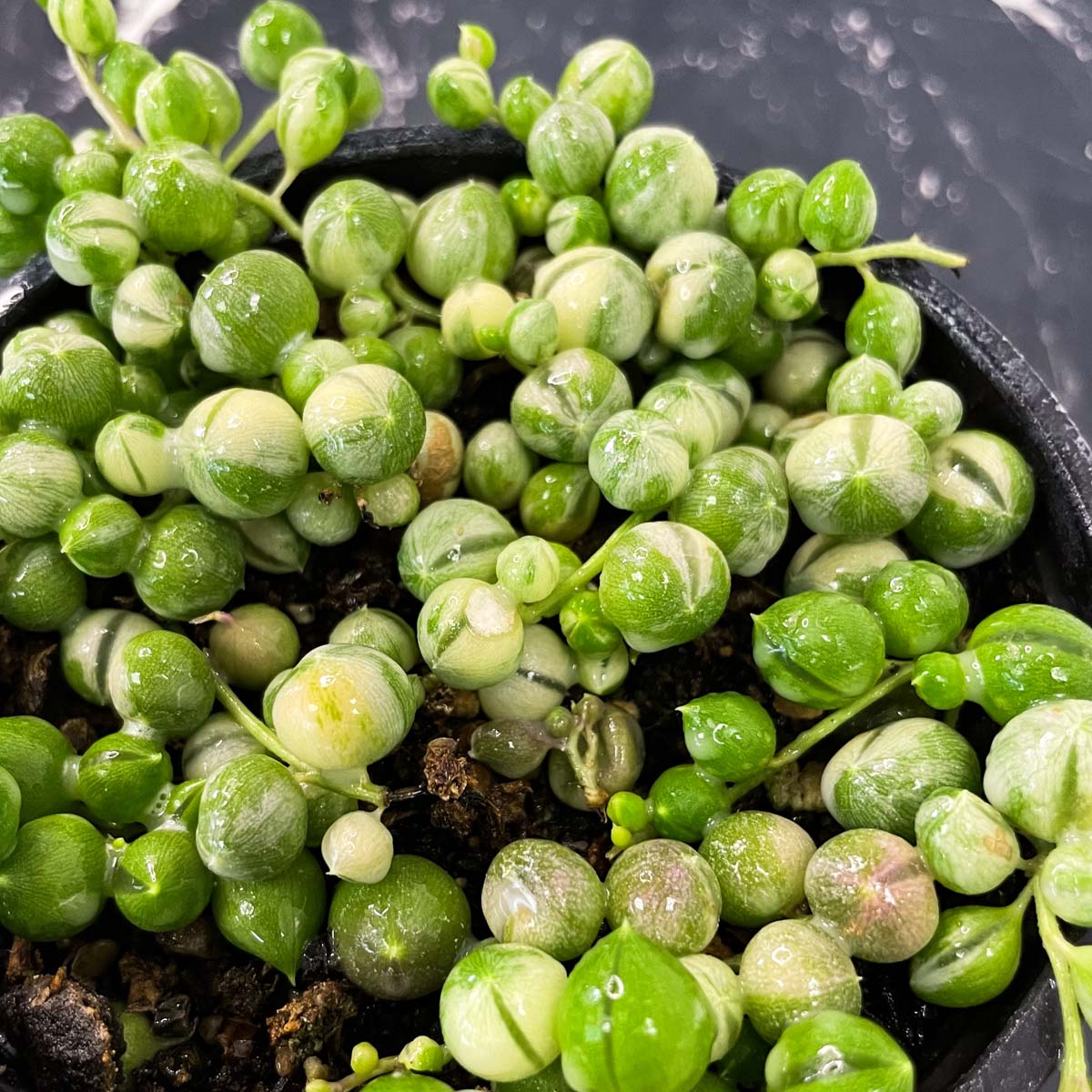 Senecio rowleyanus f. variegatus (Variegated String of Pearls)
