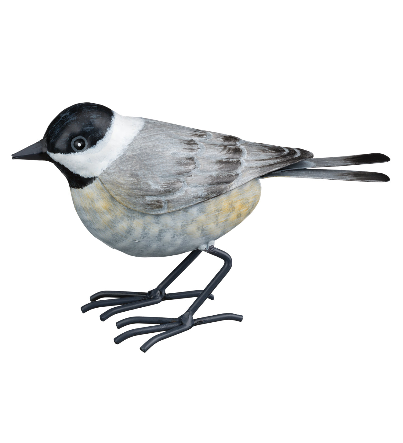Life size, all metal Chickadee replica with hand-painted realistic details. Each piece comes with a rubber band to attach the bird to a tree limb. Add on any of the other 7 birds in the collection.
